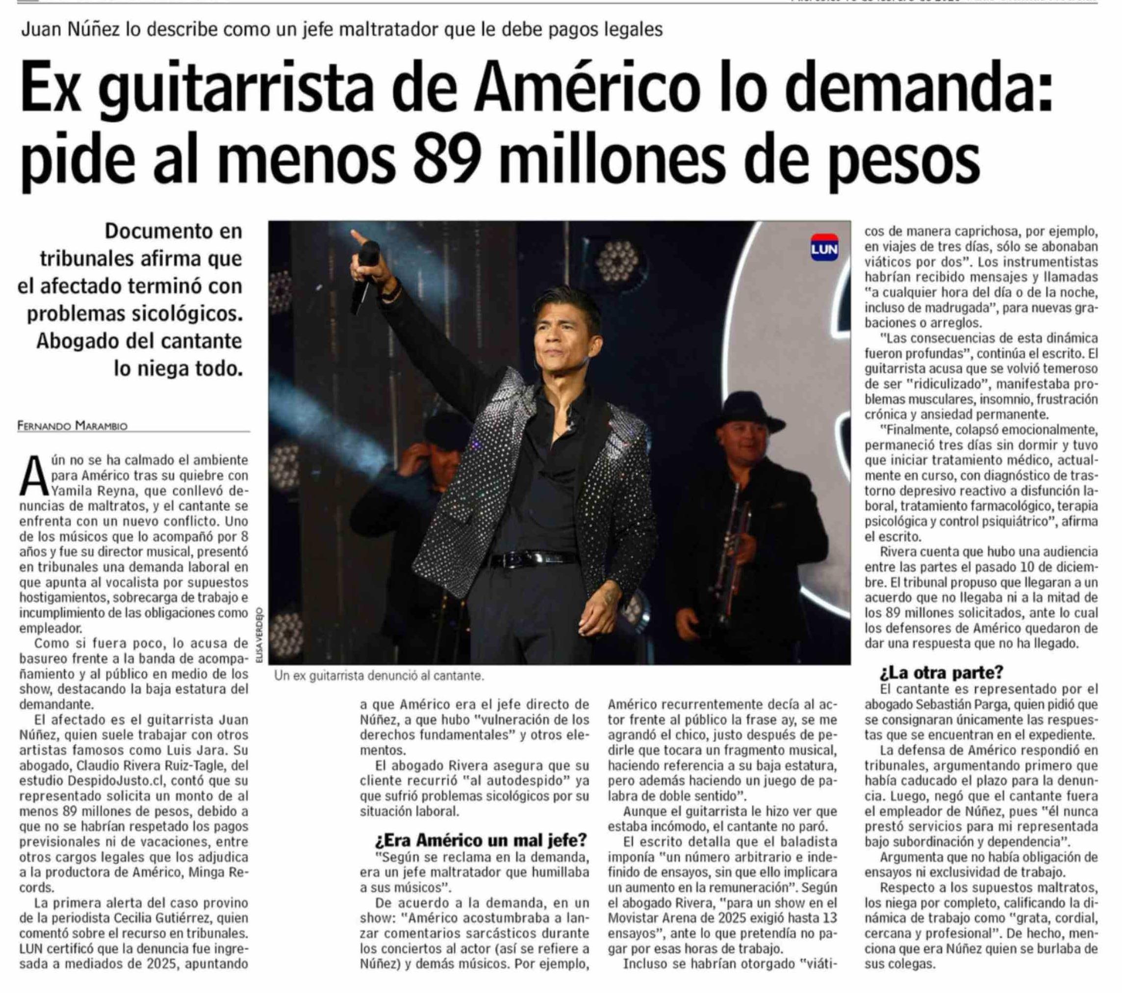Título: Ex guitarrista de Américo lo demanda: pide al menos 89 millones de pesos