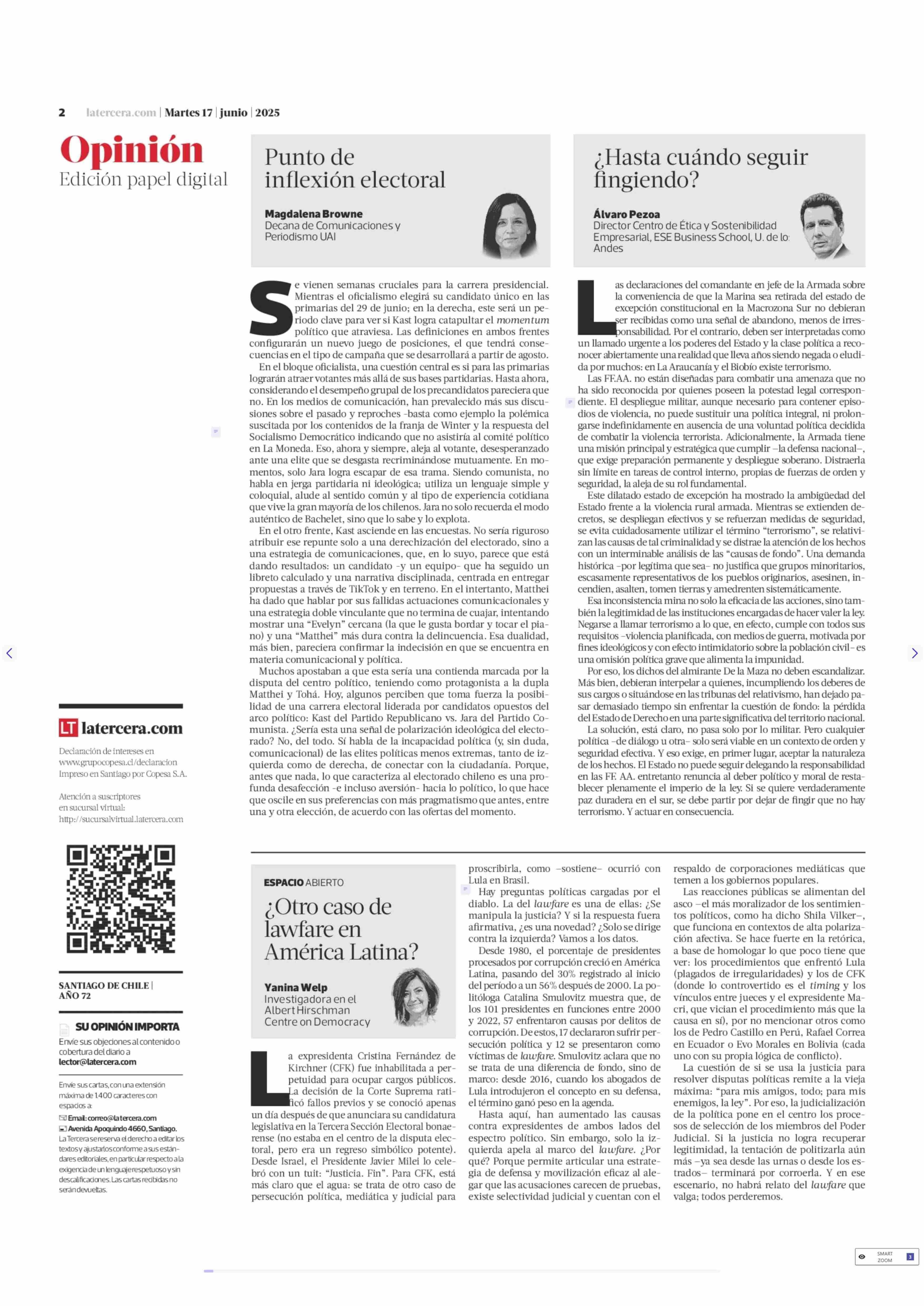 Columnas de Opinión: Punto de inflexión electoral 17-06-2025 La Tercera |