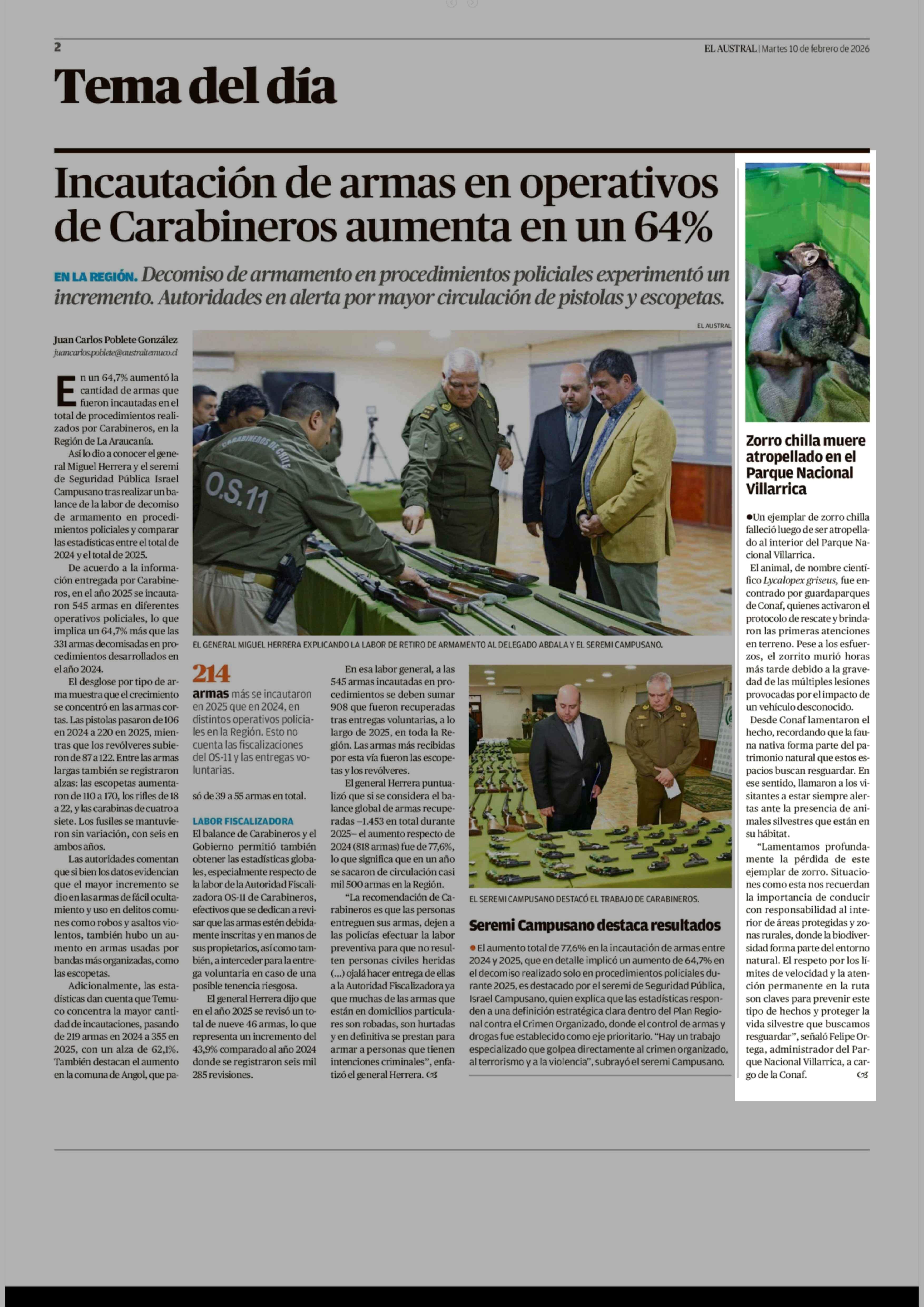 | Fecha: | 10-02-2026 | Sector: | Noticia general | Región: | Región de la Araucanía |