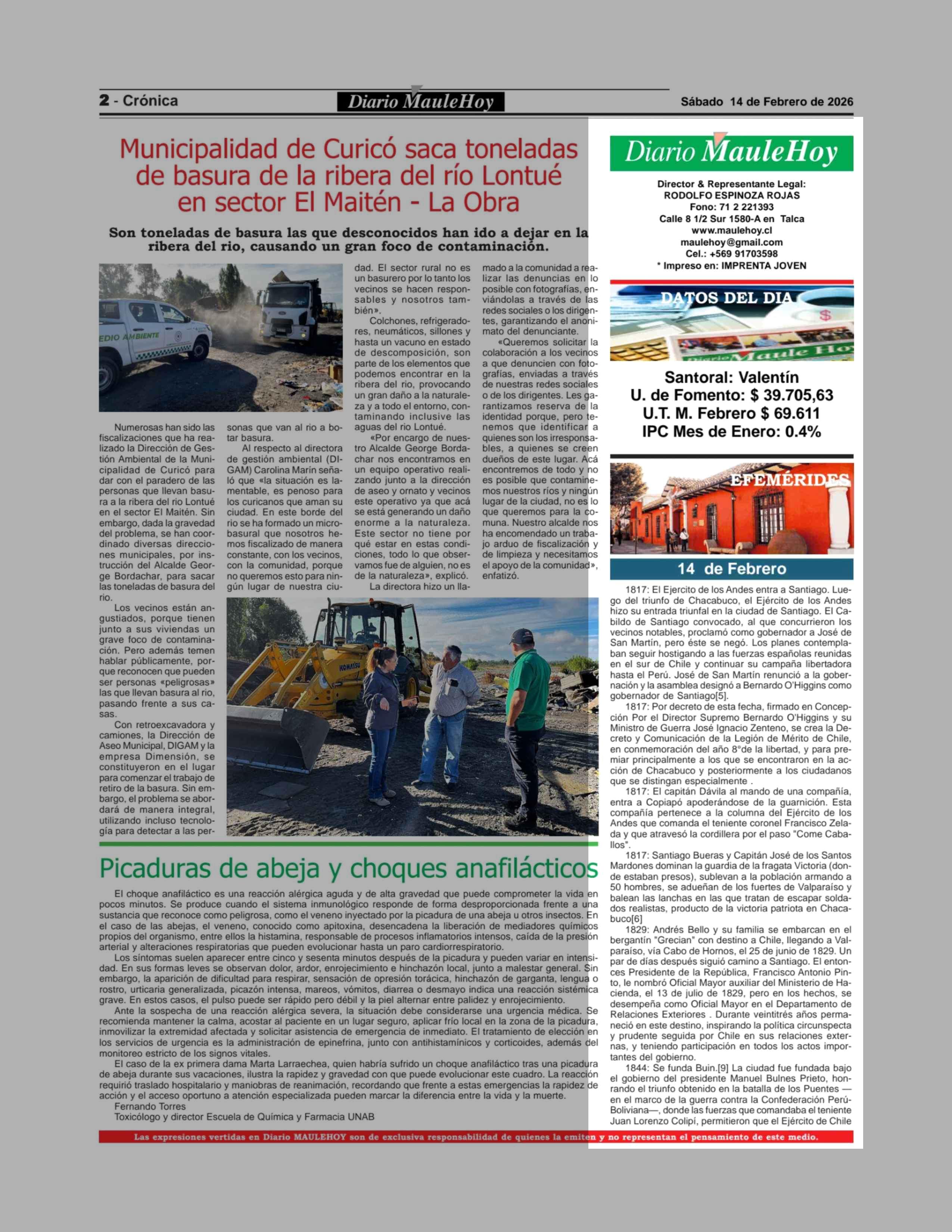| Fecha: | 14-02-2026 | Sector: | Noticia general | Región: | Región del Maule |