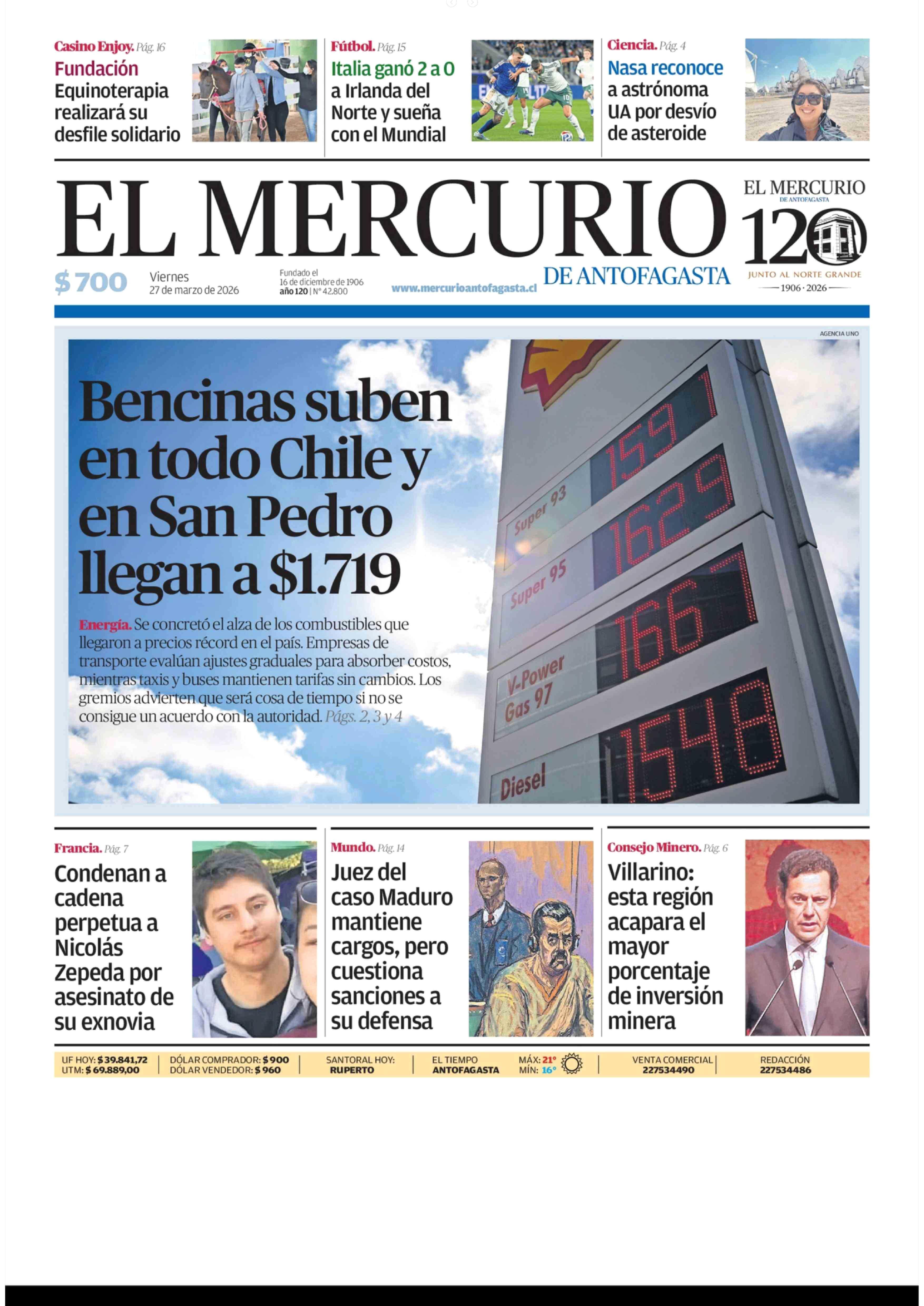 Fecha: 27-03-2026 Sector: Portada Región: Región de Antofagasta
