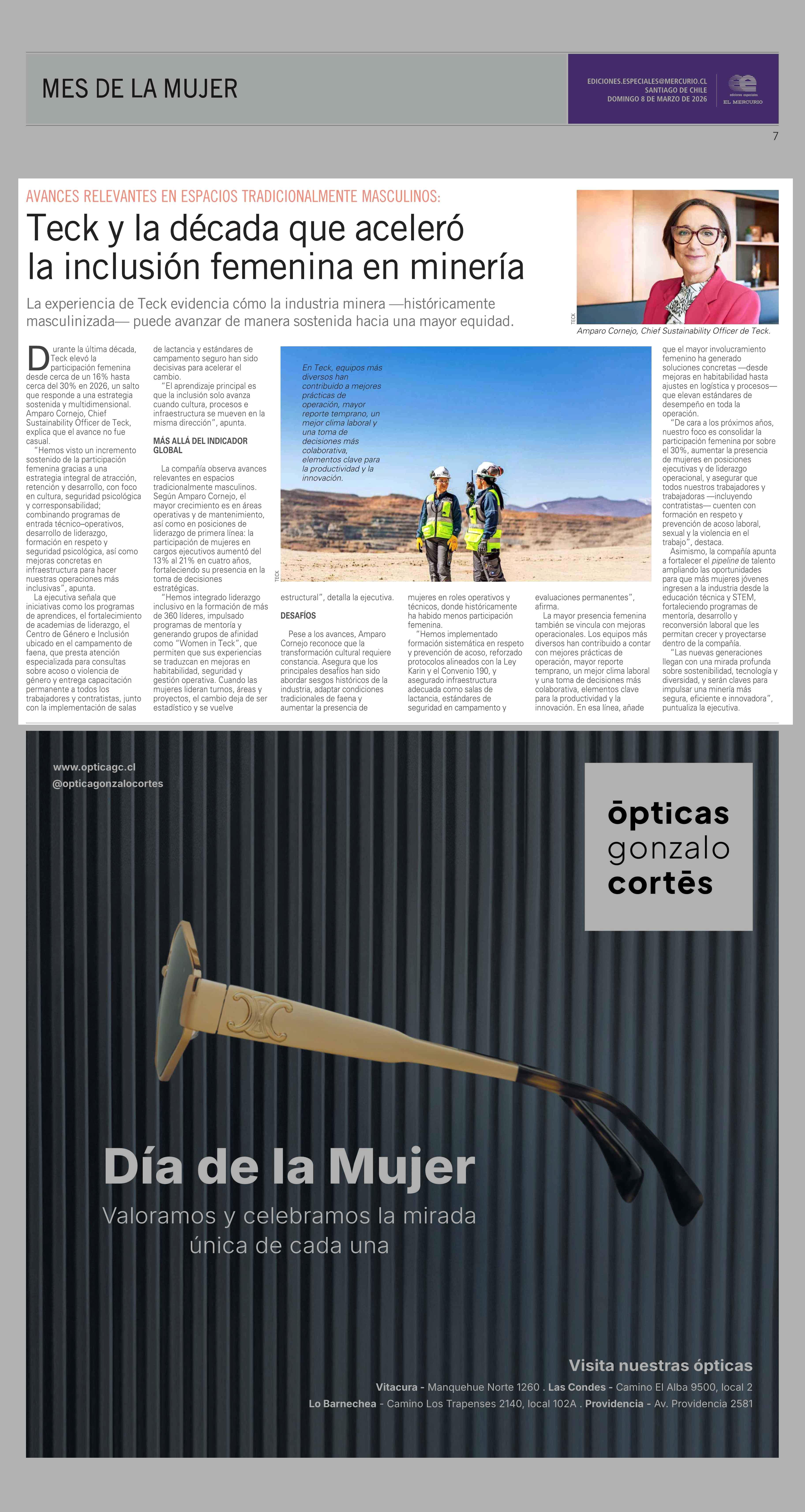 Teck y la década que aceleró la inclusión femenina en minería 08-03-2026 El Mercurio |