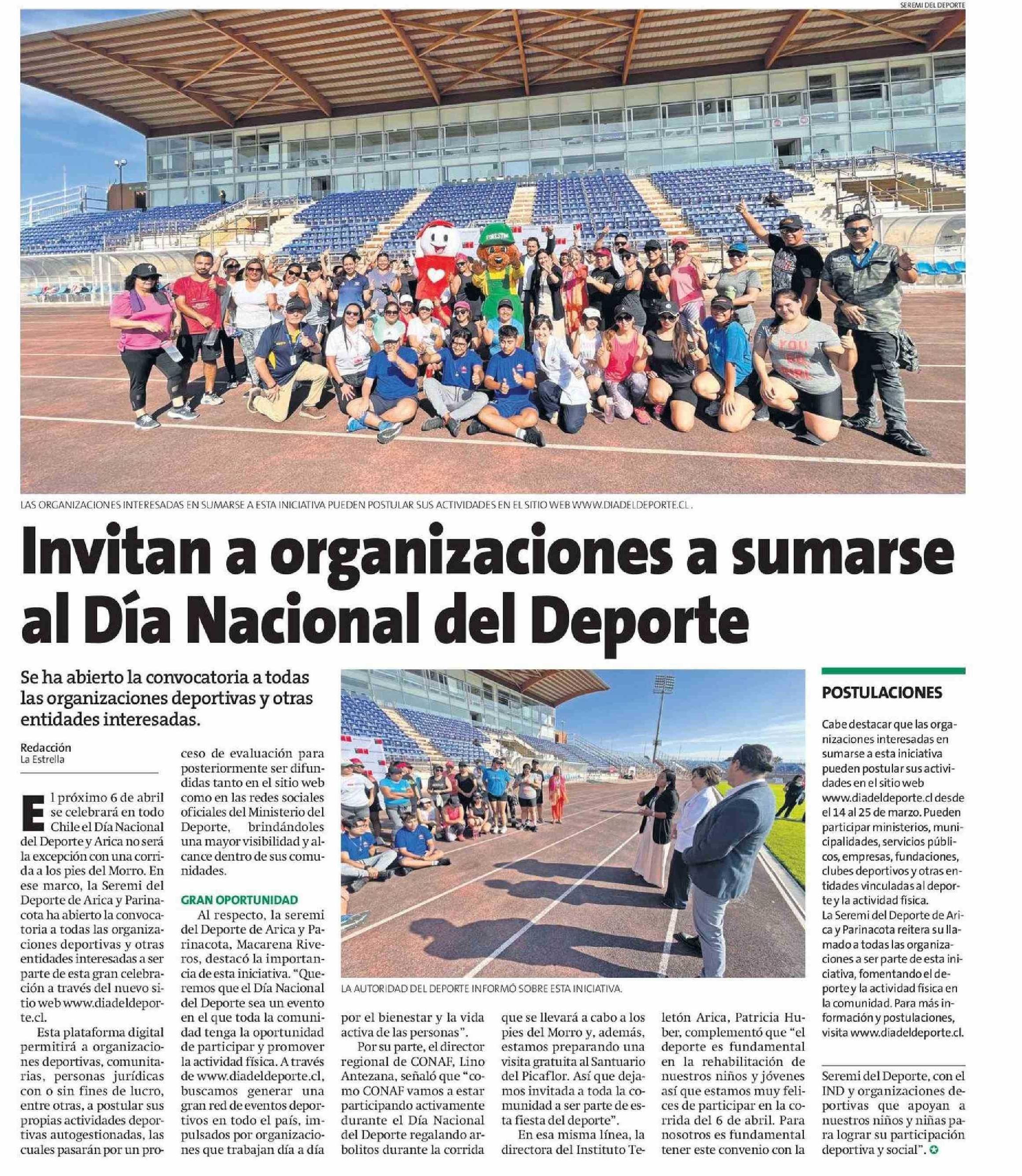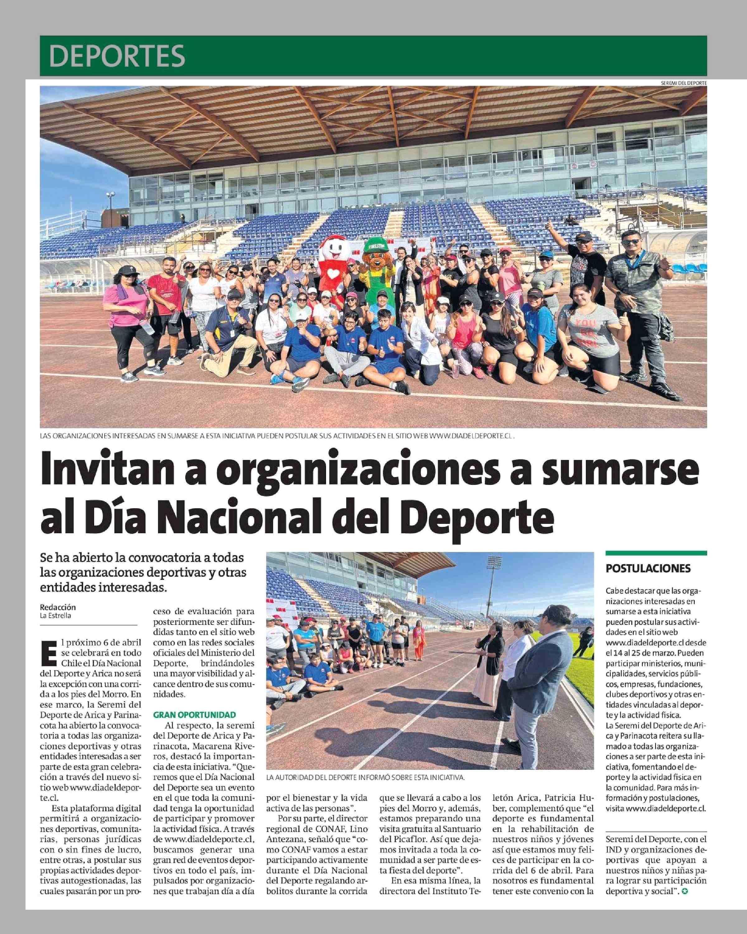 Invitan a organizaciones a sumarse al Día Nacional del Deporte 16-03-2025 La Estrella de Arica |
