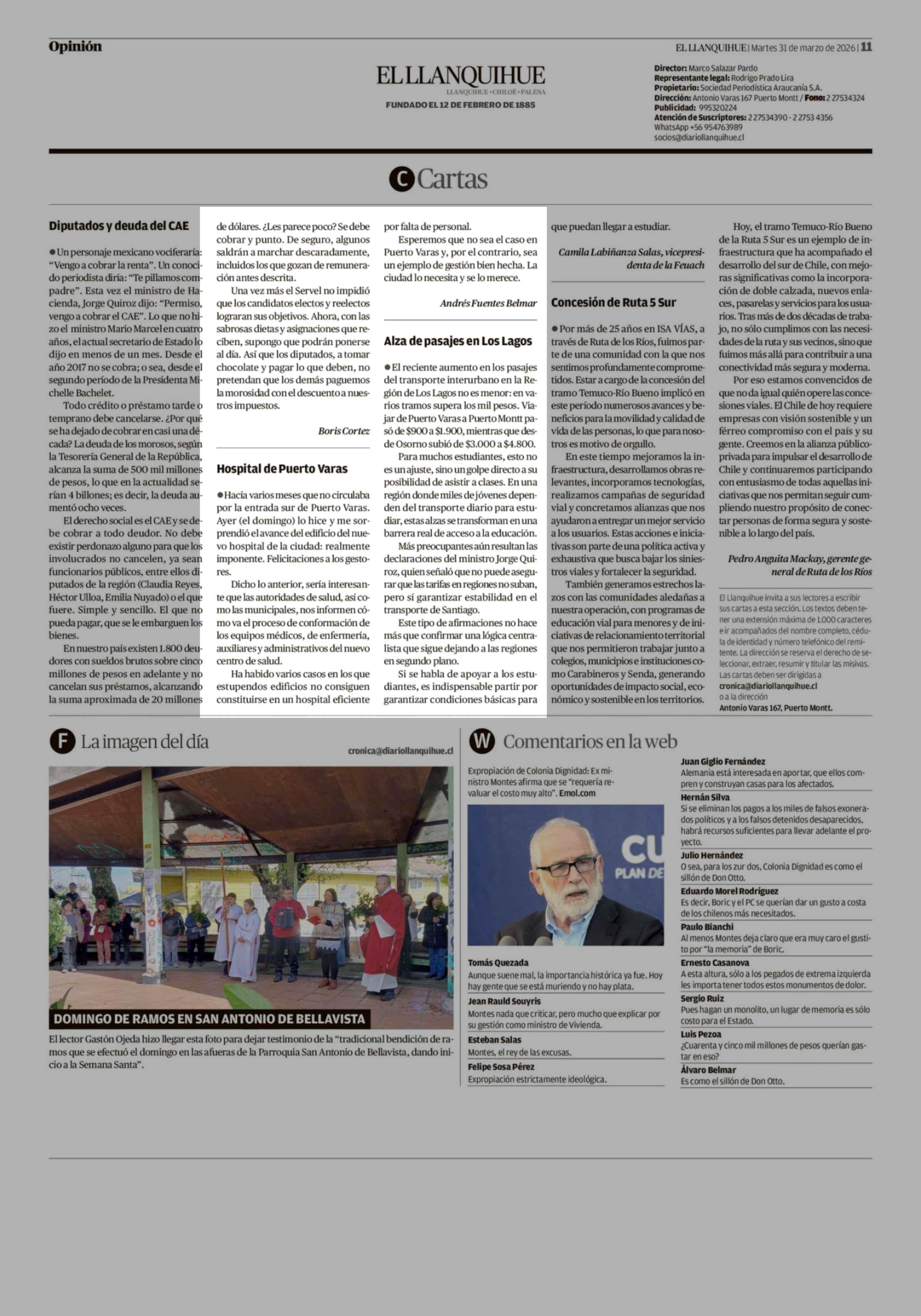 Cartas: Hospital de Puerto Varas 31-03-2026 El Llanquihue |