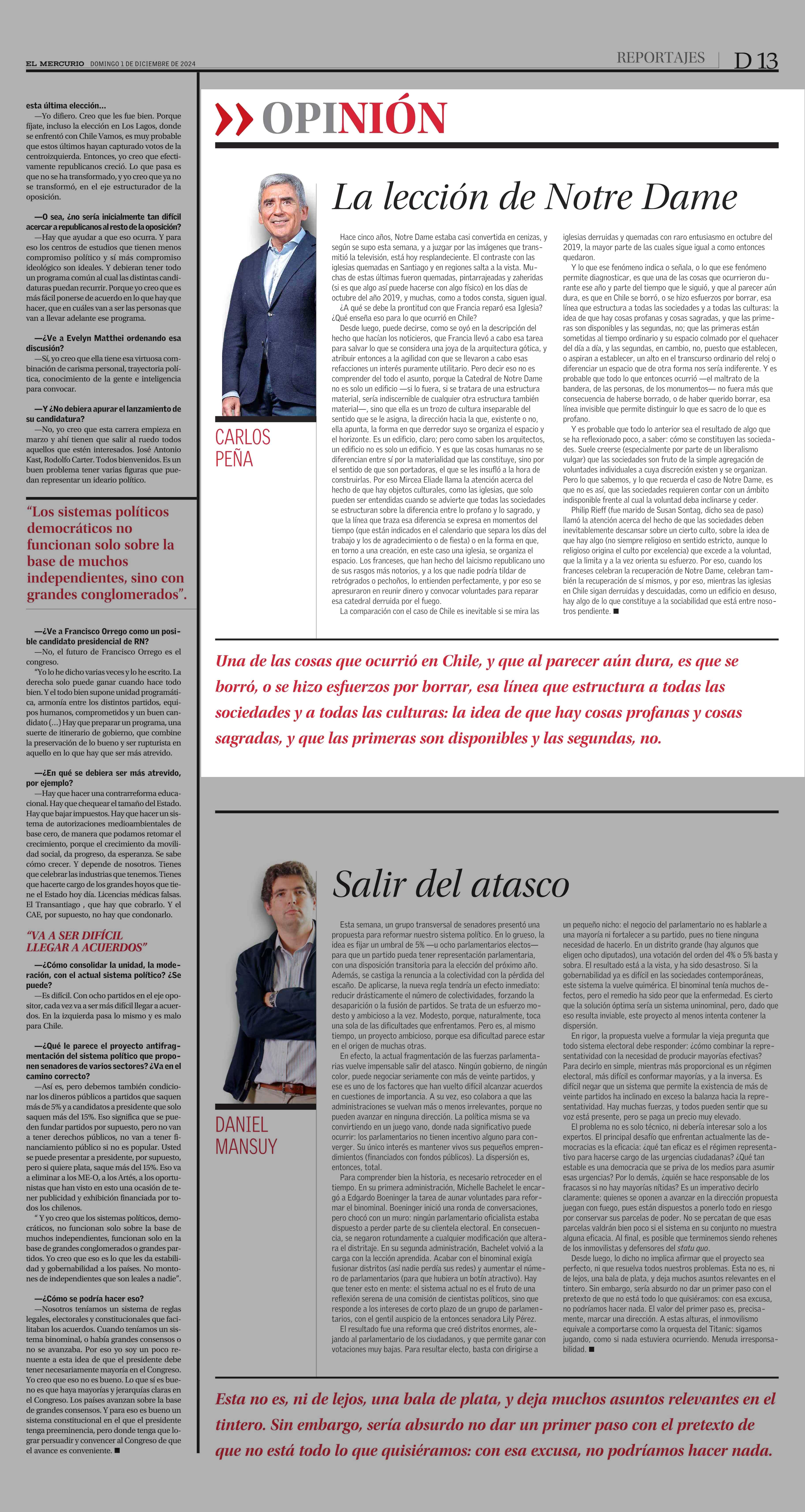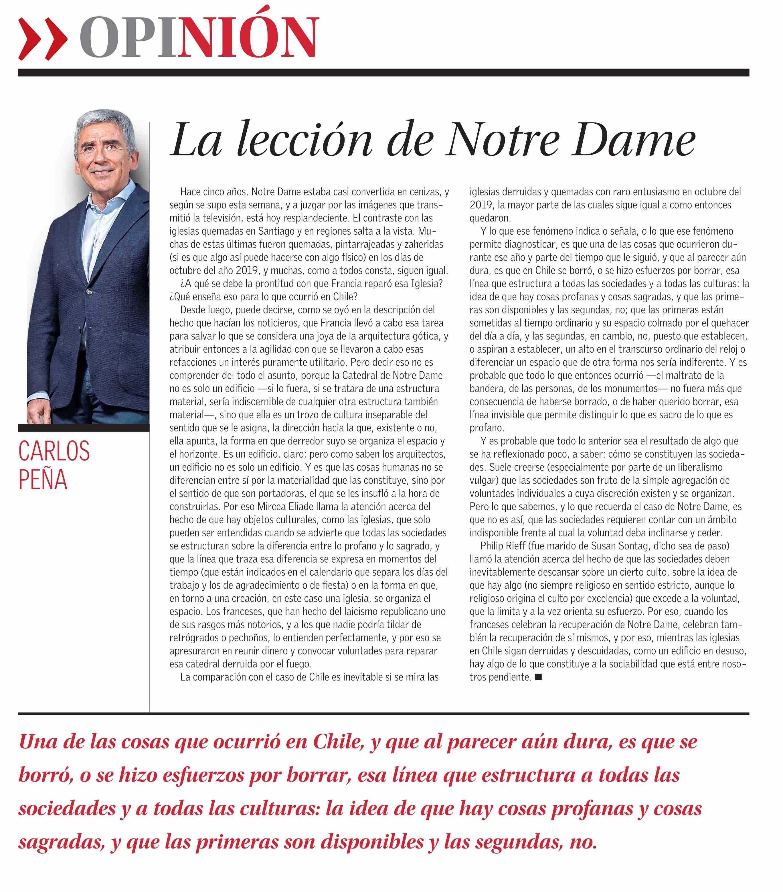 La lección de Notre Dame 01-12-2024 El Mercurio |