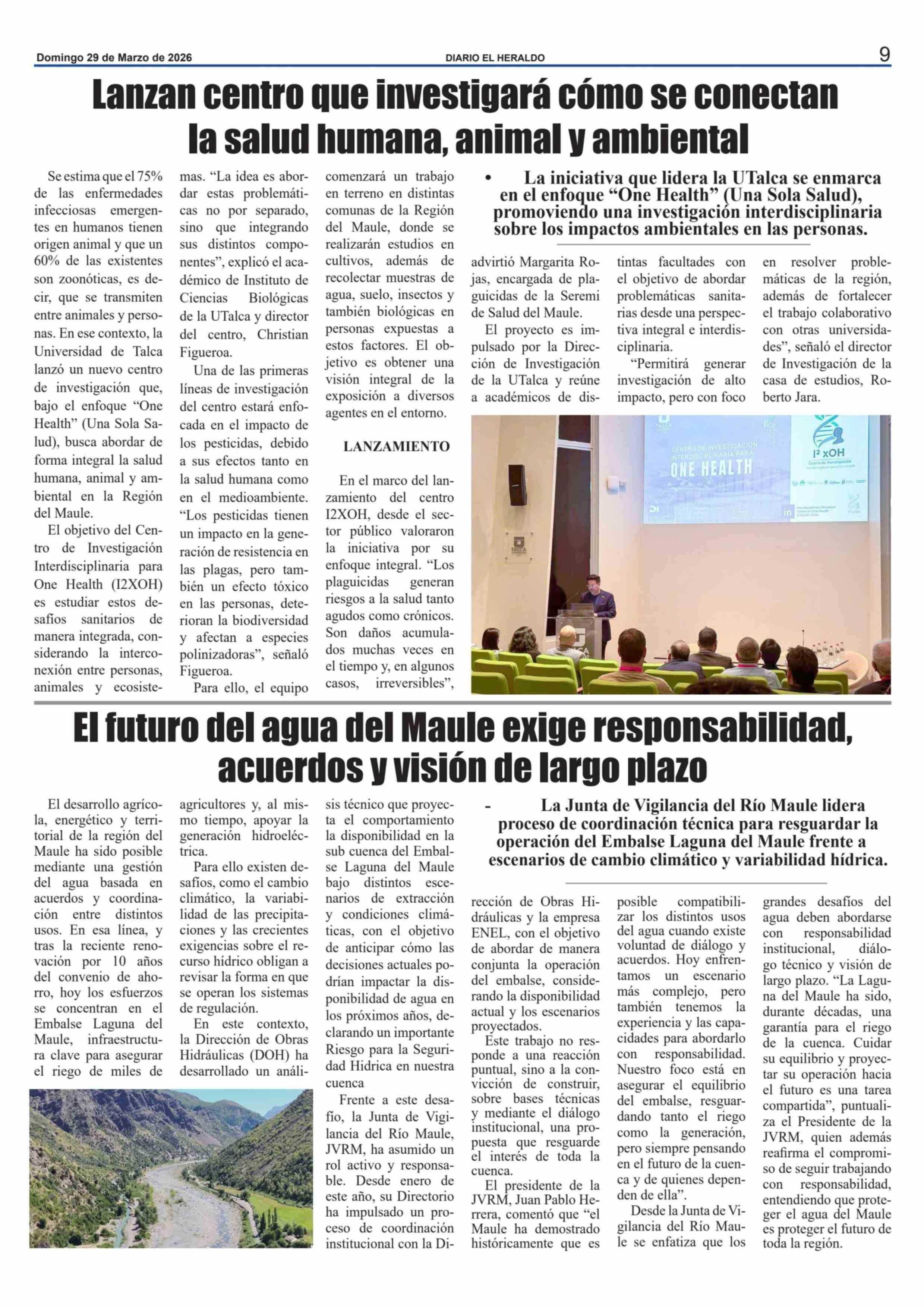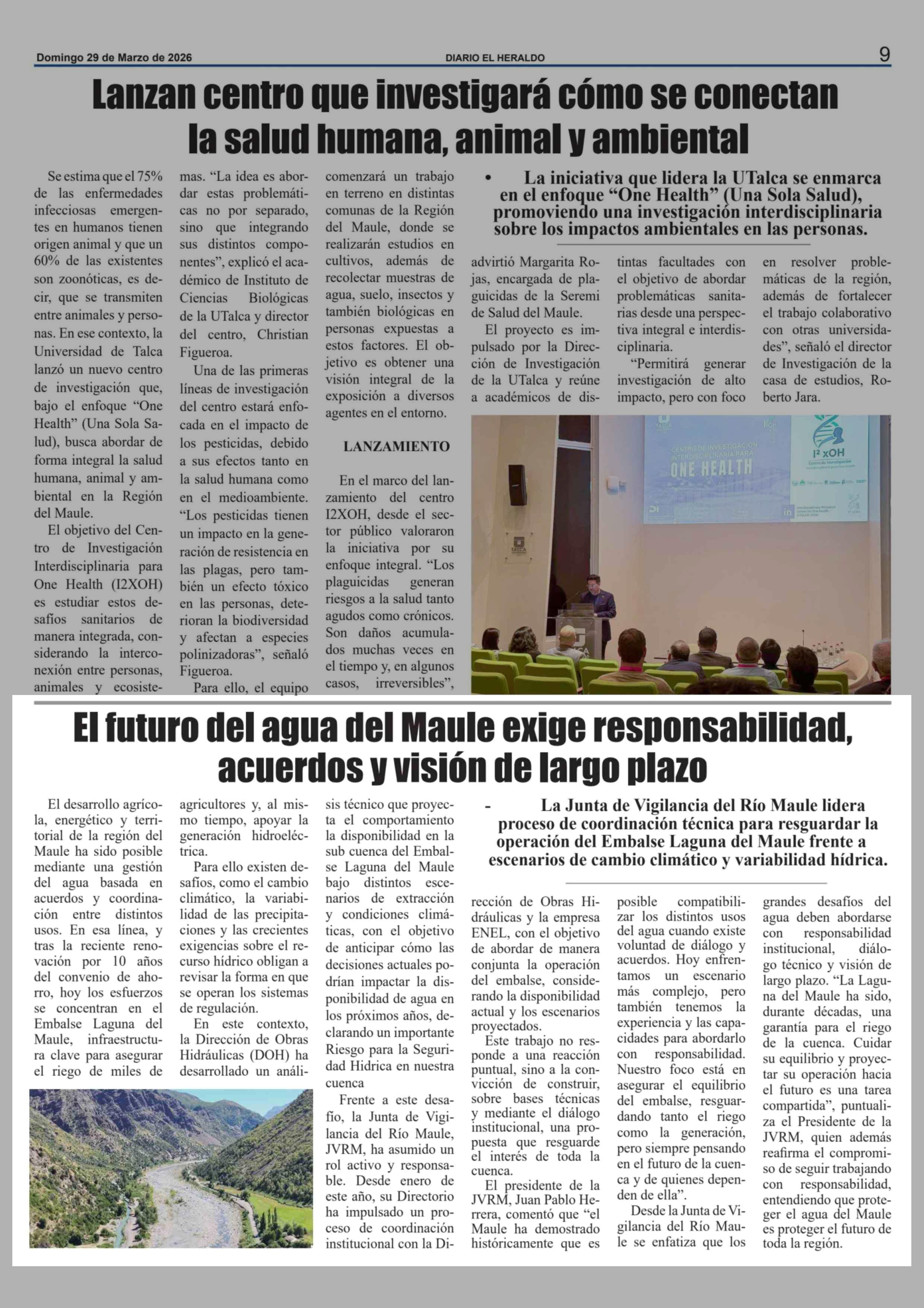 El futuro del agua del Maule exige responsabilidad, acuerdos y visión de largo plazo 29-03-2026 El Heraldo |