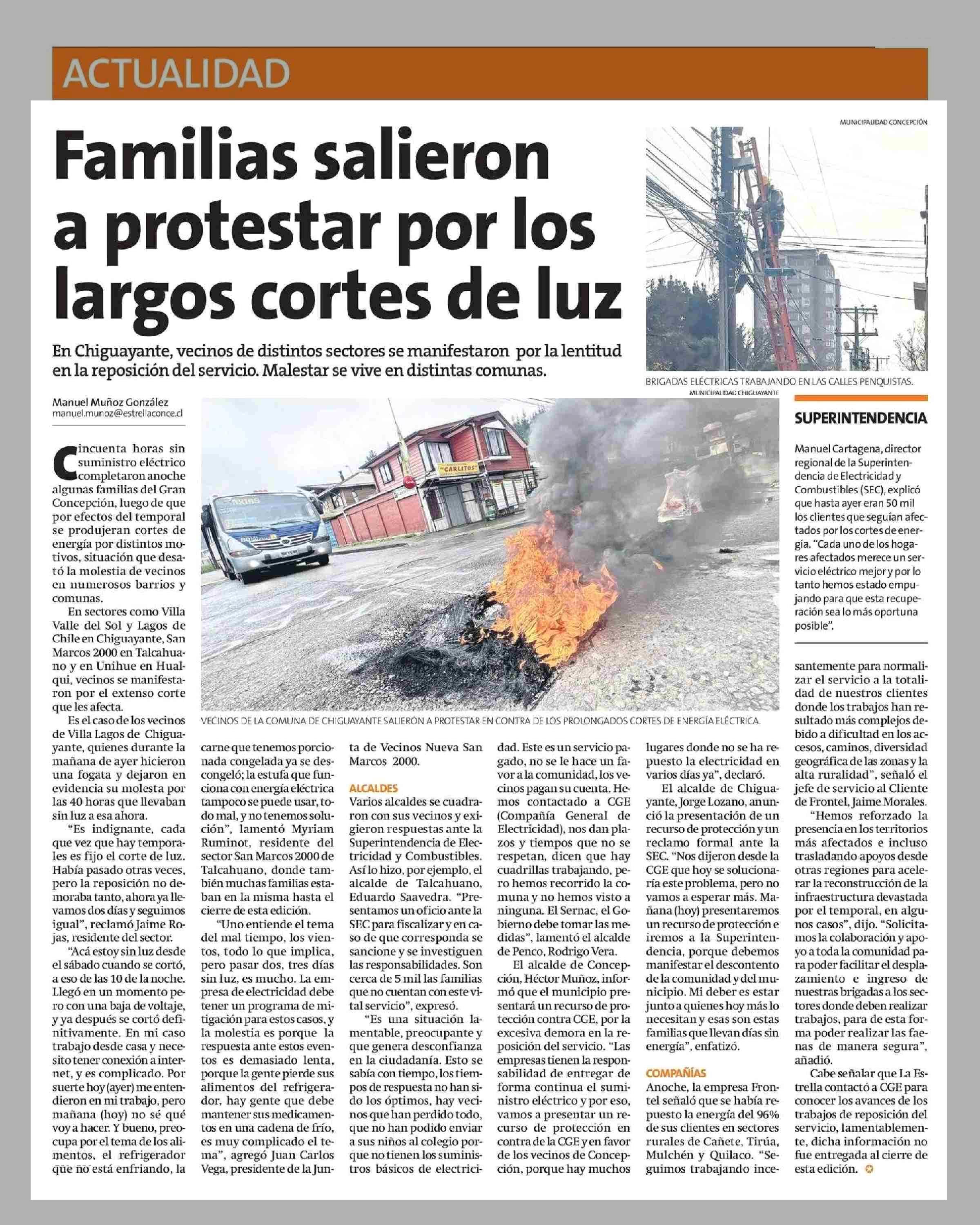 Familias salieron a protestar por los largos cortes de luz 17-06-2025 La Estrella de Concepción |