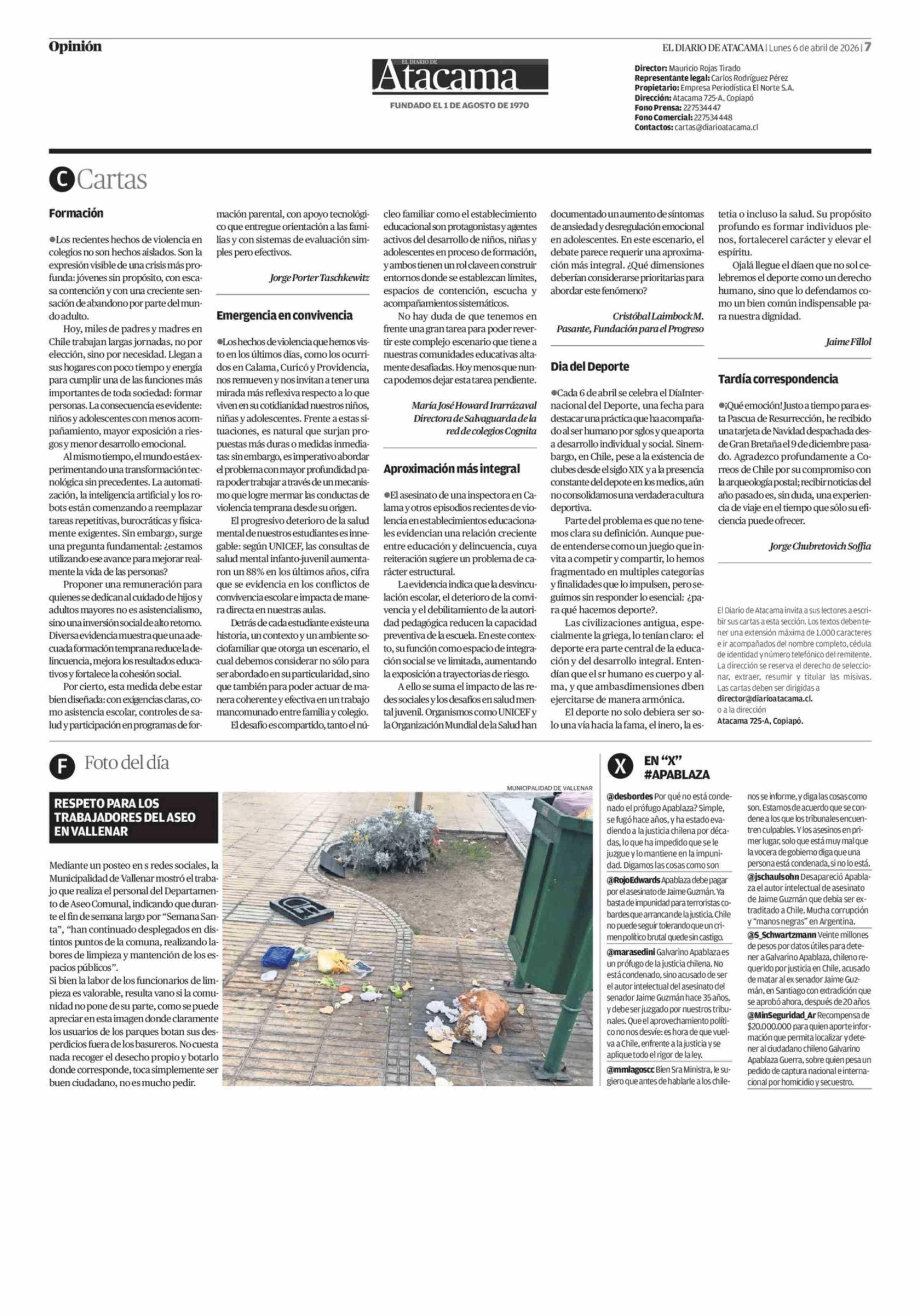 Fuente: El Diario de Atacama (El Diario de Atacama) Página(s): 7
