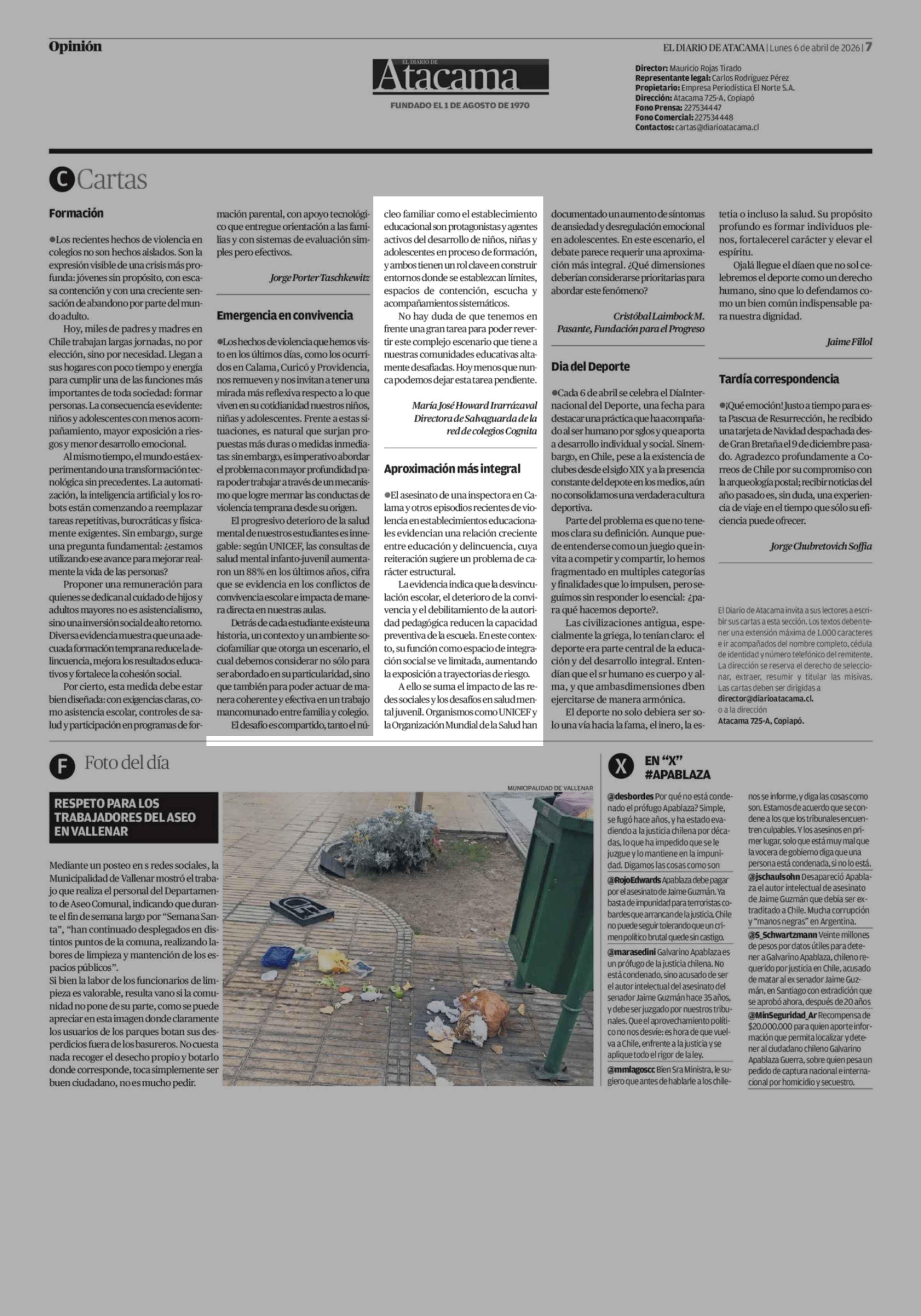 Fecha: 06-04-2026 Sector: Cartas Región: Región de Atacama