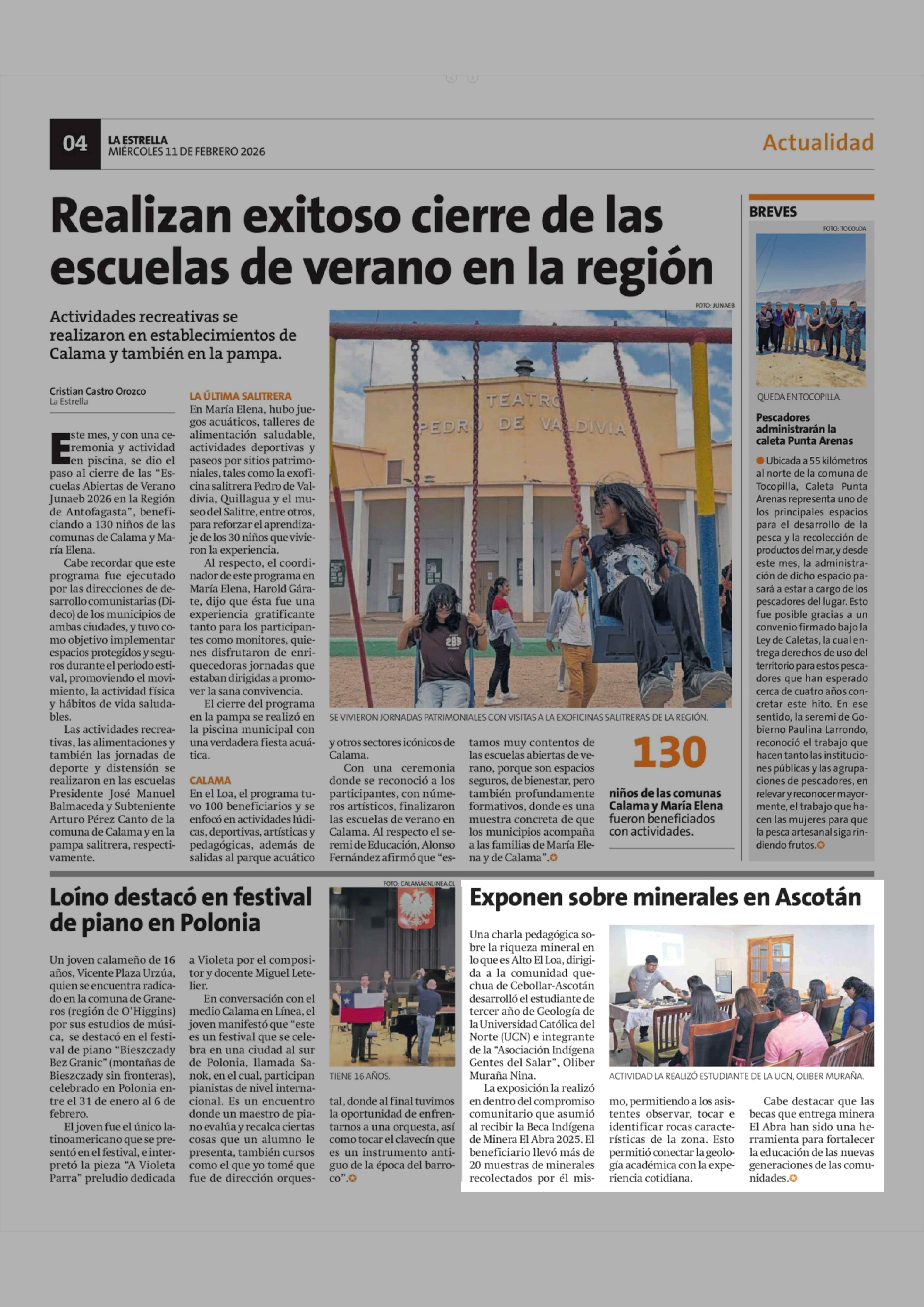 | Fecha: | 11-02-2026 | Sector: | Noticia general | Región: | Región de Antofagasta |