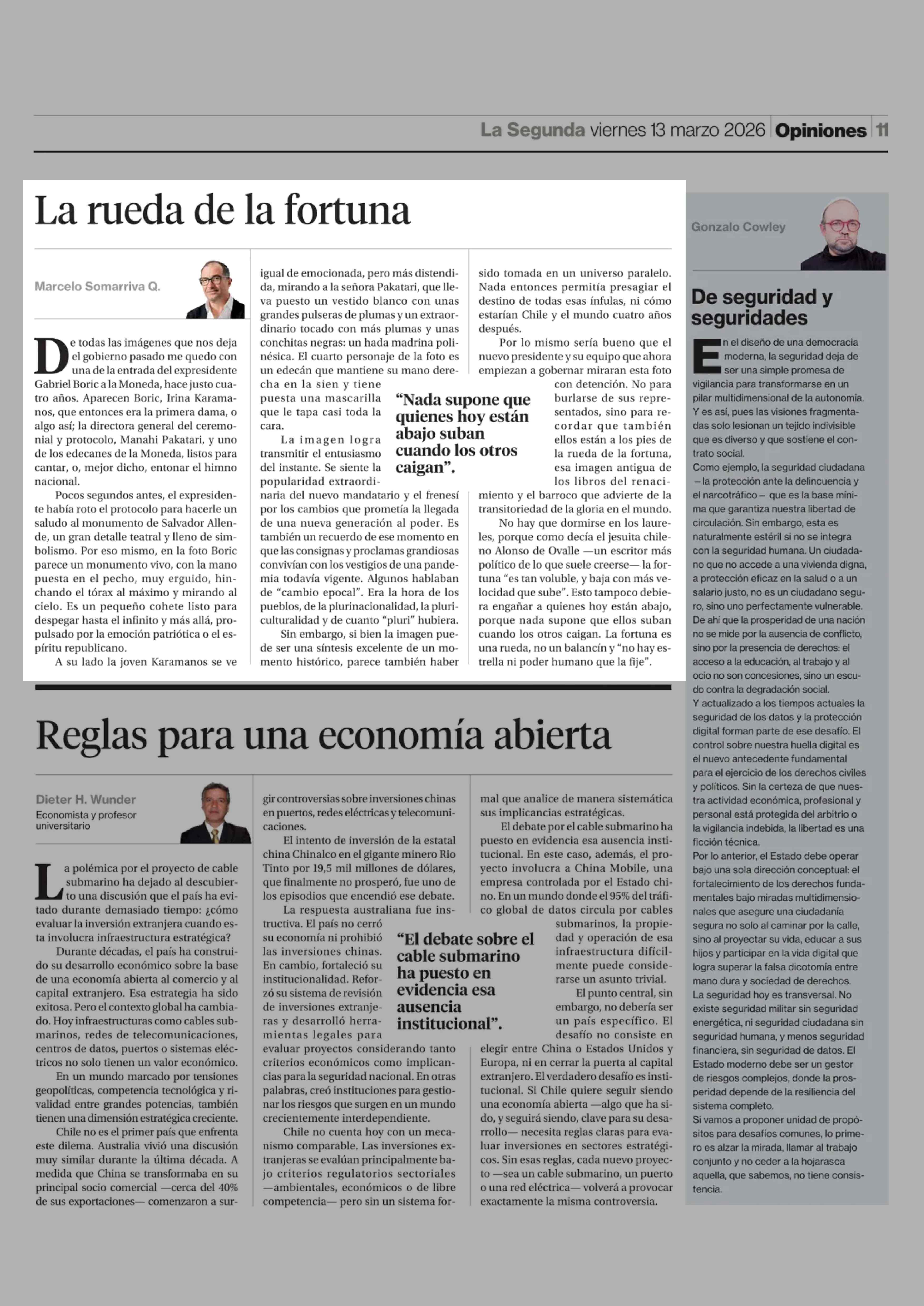 Fecha: 13-03-2026 Sector: Columnas de Opinión Región: Región Metropolitana de Santiago