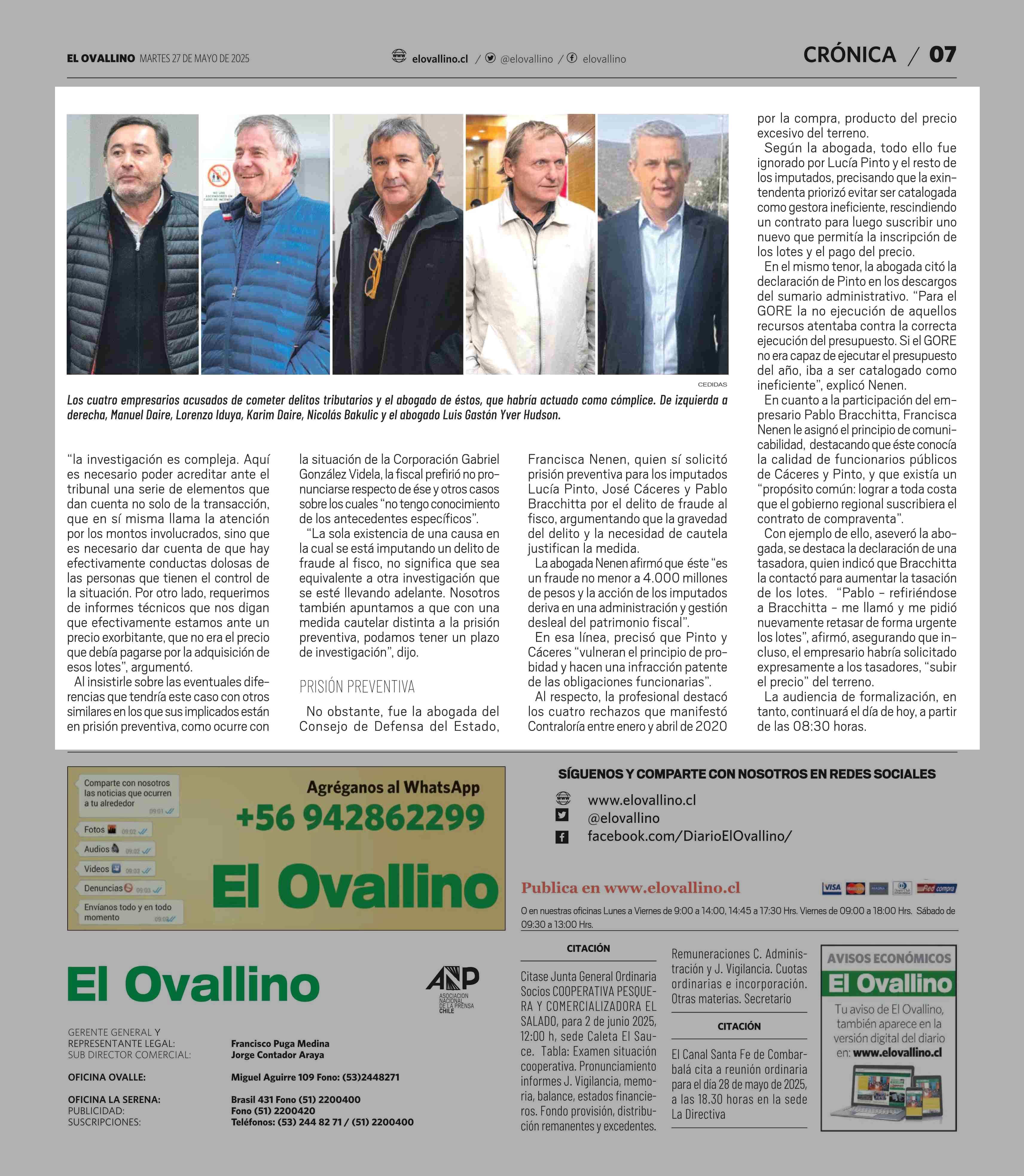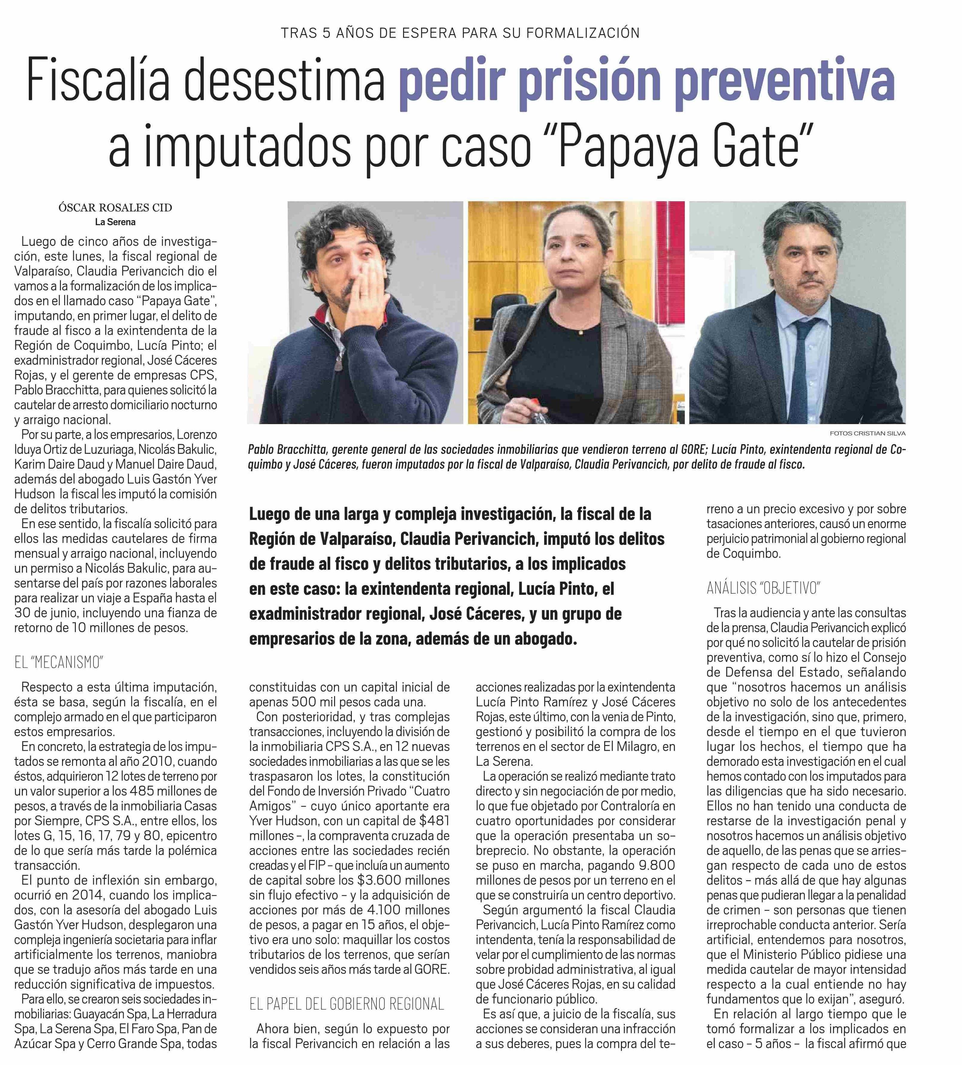 Fiscalia desestima pedir prisión preventiva a imputados por caso “Papaya Late” 27-05-2025 El Ovallino |