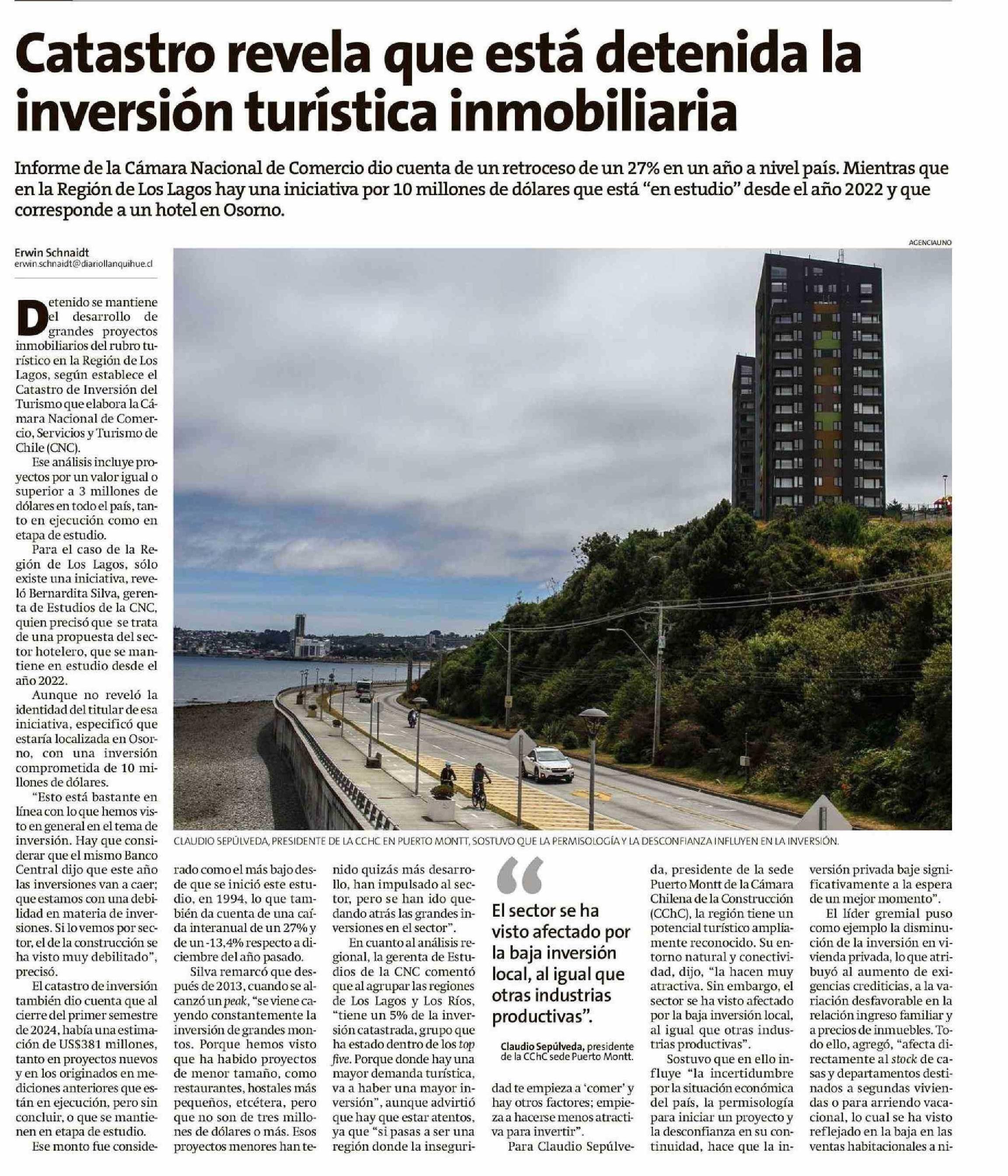 Catastro revela que está detenida la inversión turística inmobiliaria 20-01-2025 La Estrella de Chiloé |