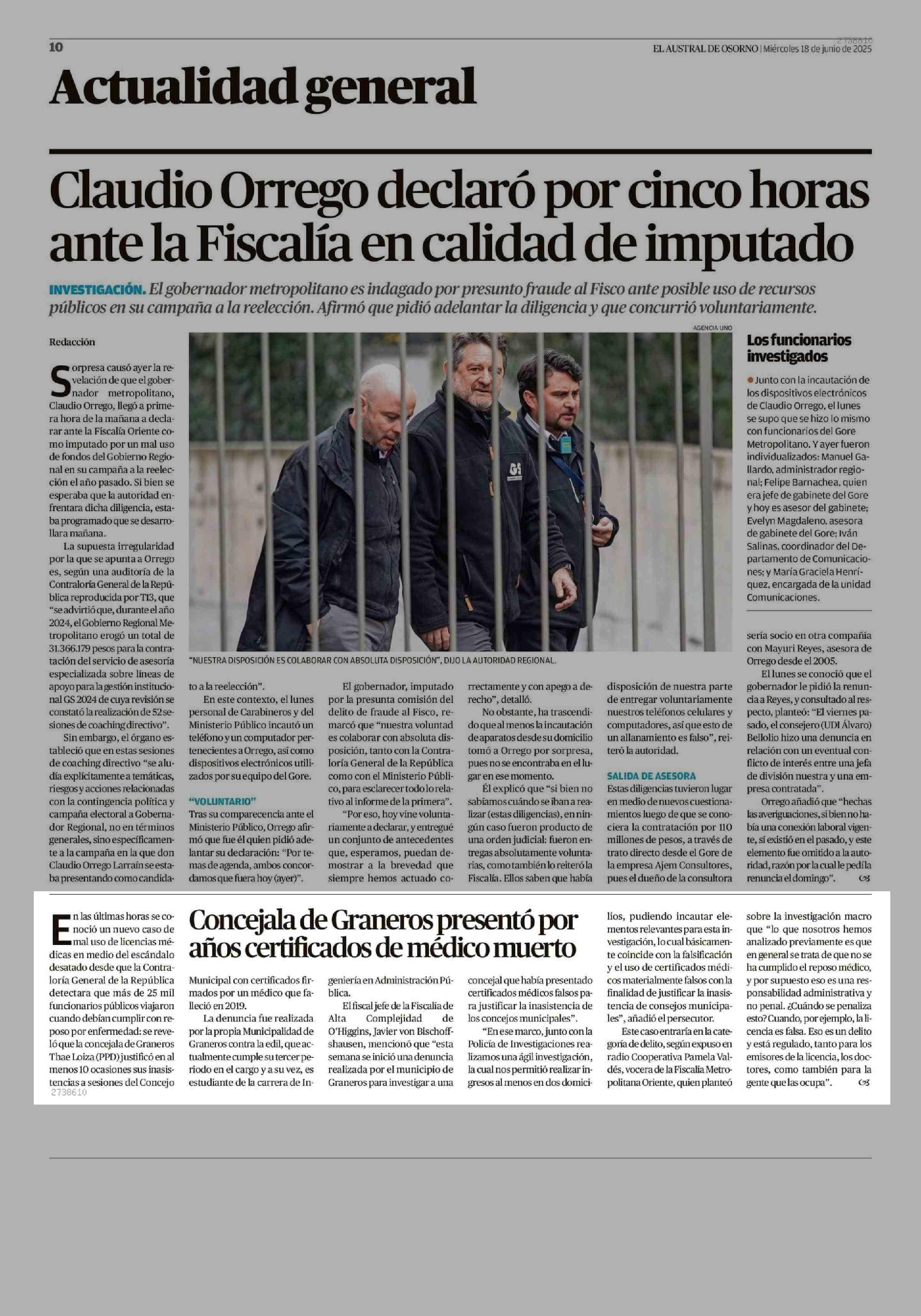 Concejala de Graneros presentó por años certificados de médico muerto 18-06-2025 El Austral de Osorno |