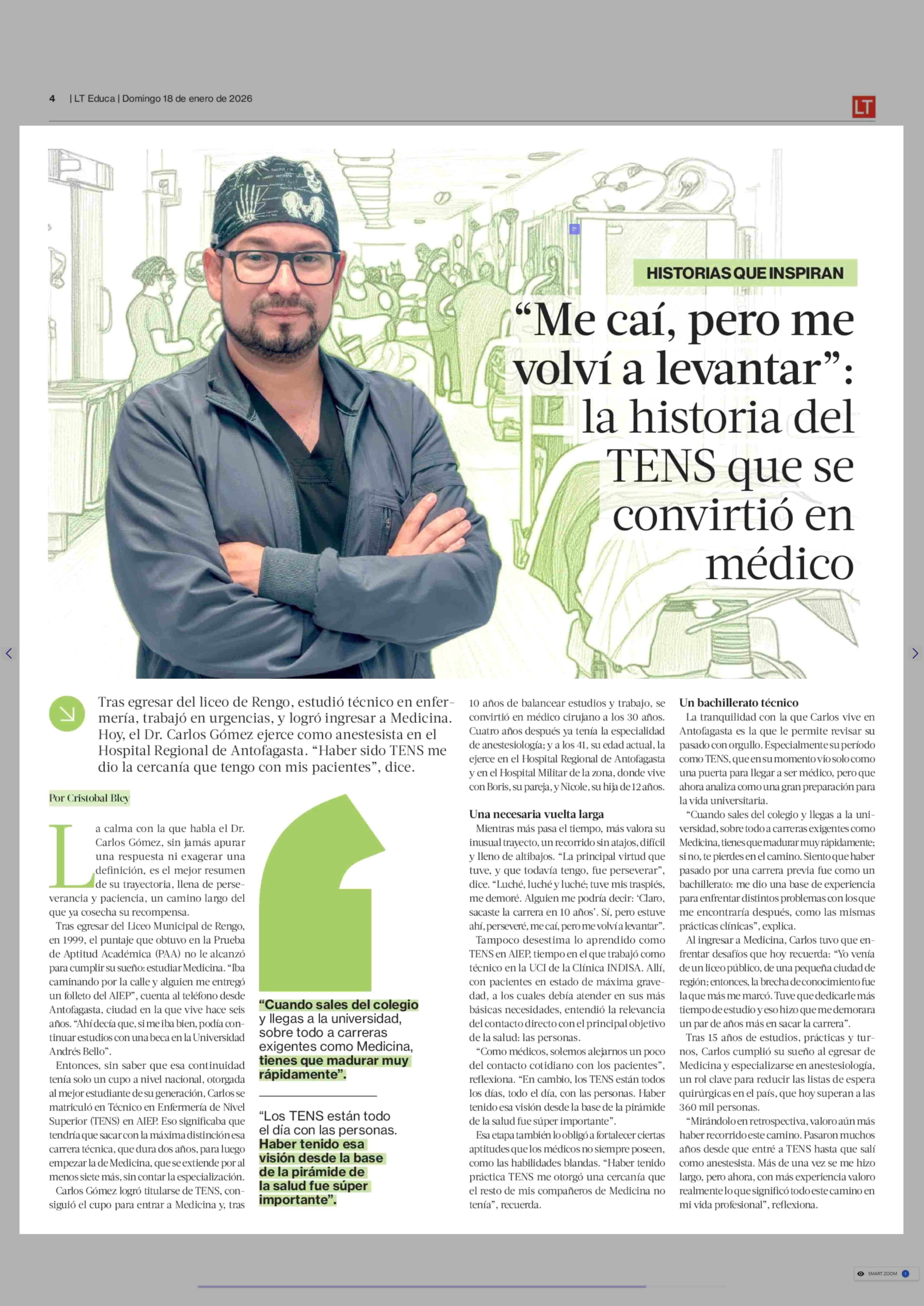 “Me caí, pero me volví a levantar”: lá La historia del TENS que se convirtió en médico 18-01-2026 La Tercera |
