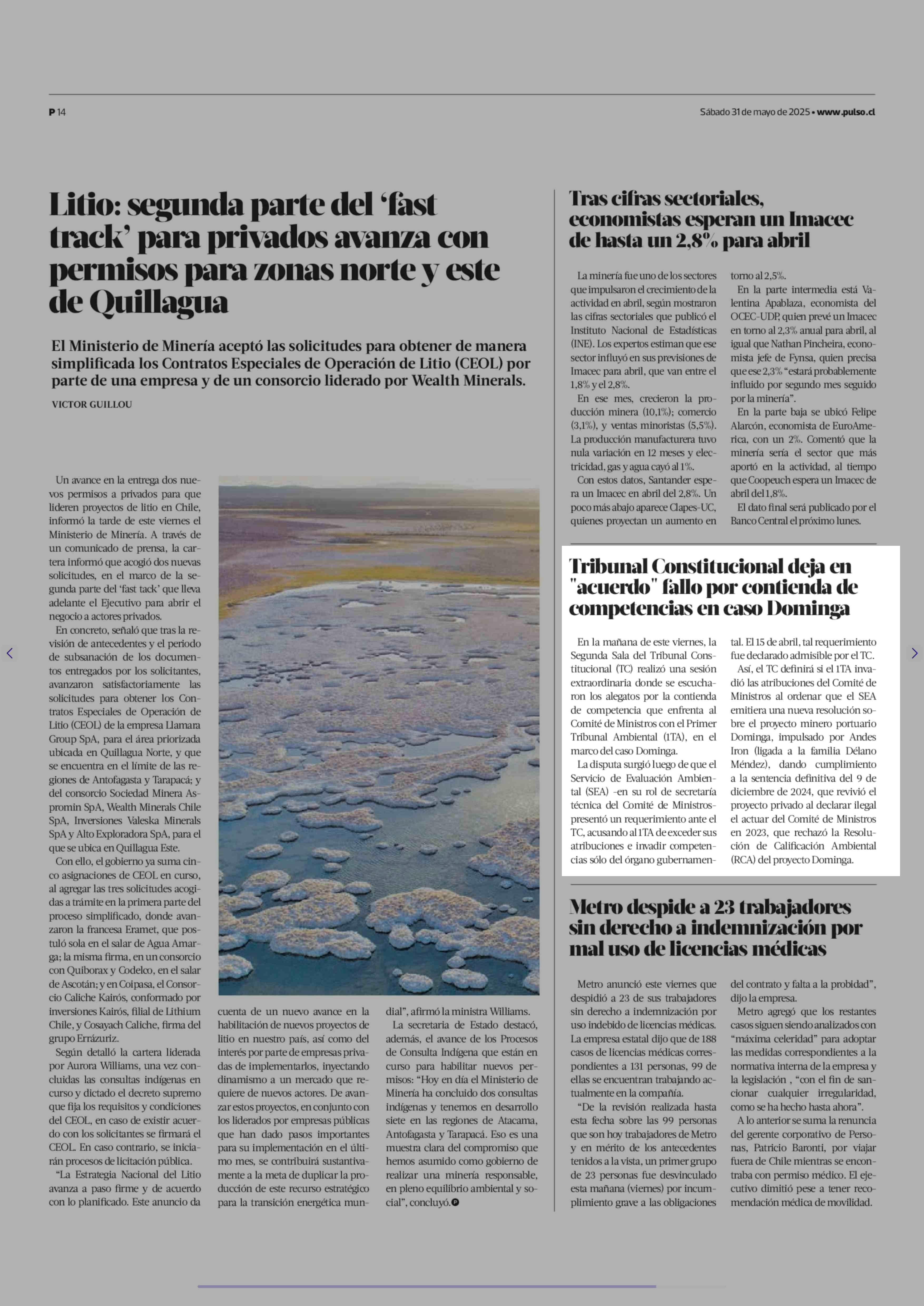 Tribunal Constitucional deja en "acuerdo" fallo por contienda de competencias en caso Dominga 31-05-2025 La Tercera |