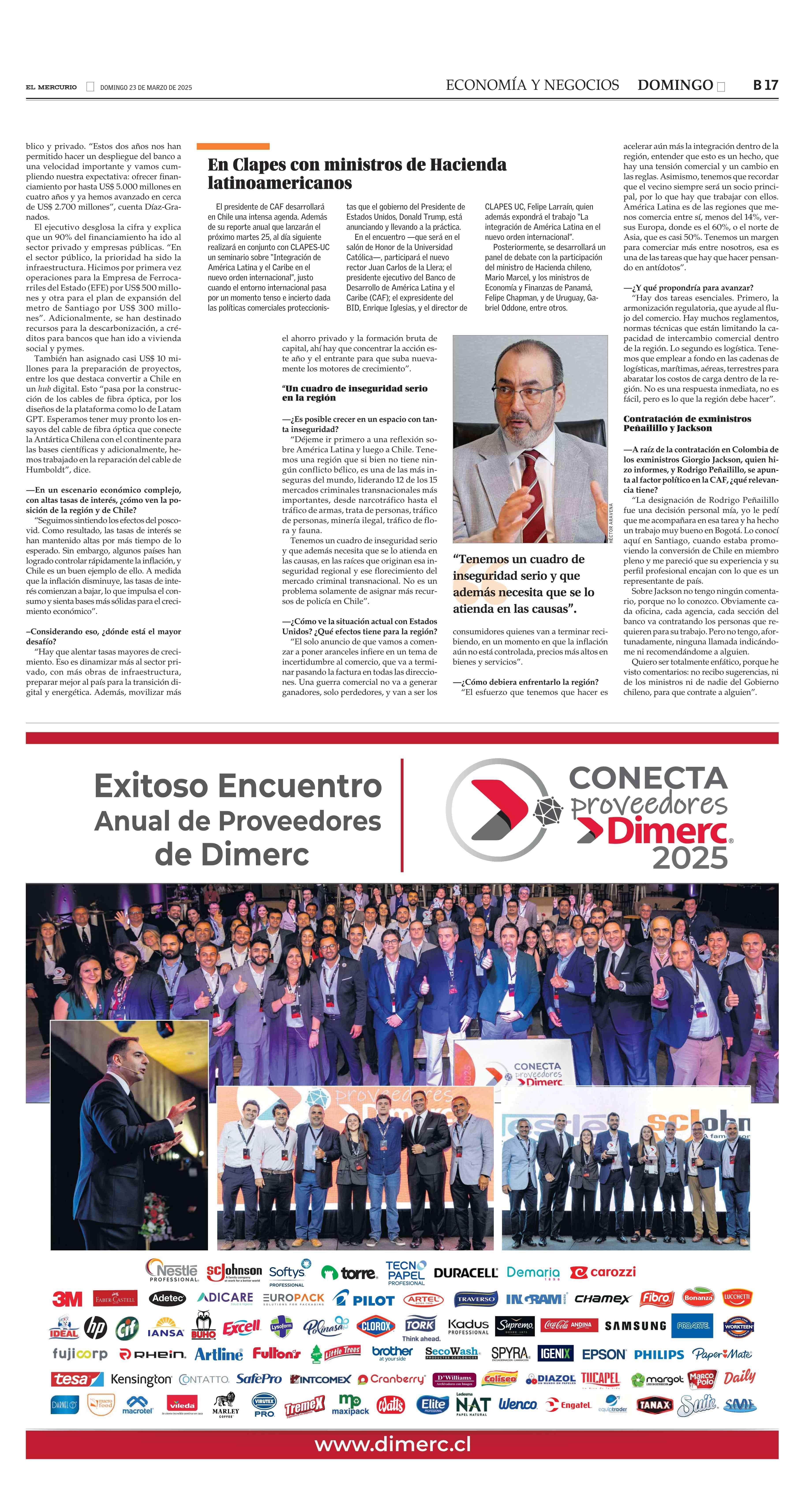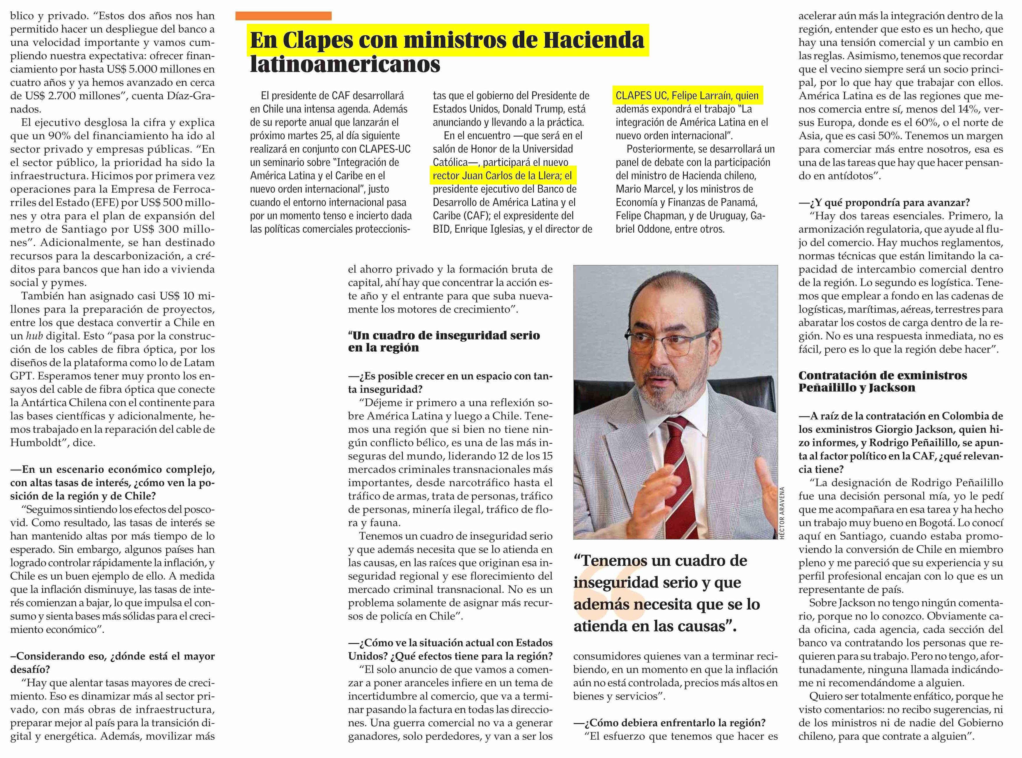 PRESIDENTE DE BANCO CAF: “Una guerra comercial no va a generar ganadores, solo perdedores” 23-03-2025 El Mercurio |