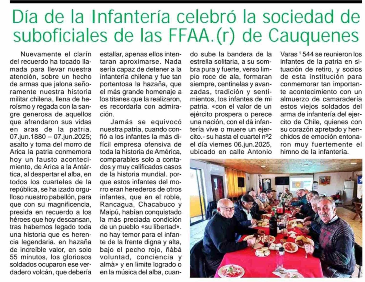 Día de la Infantería celebró la sociedad de suboficiales de las FFAA.(r) de Cauquenes 13-06-2025 Maule Hoy |
