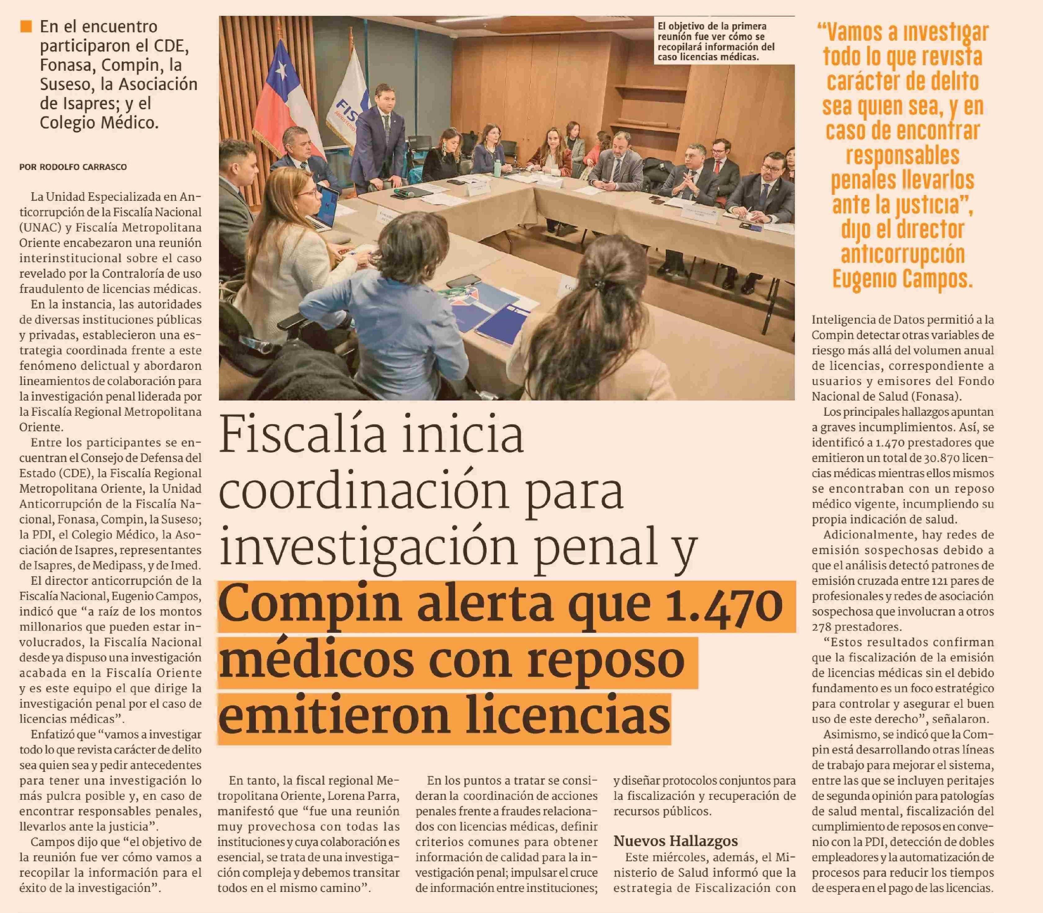 Fiscalía inicia coordinación para investigación penal y Compin alerta que 1.470 médicos con reposo emitieron licencias 12-06-2025 Diario Financiero |