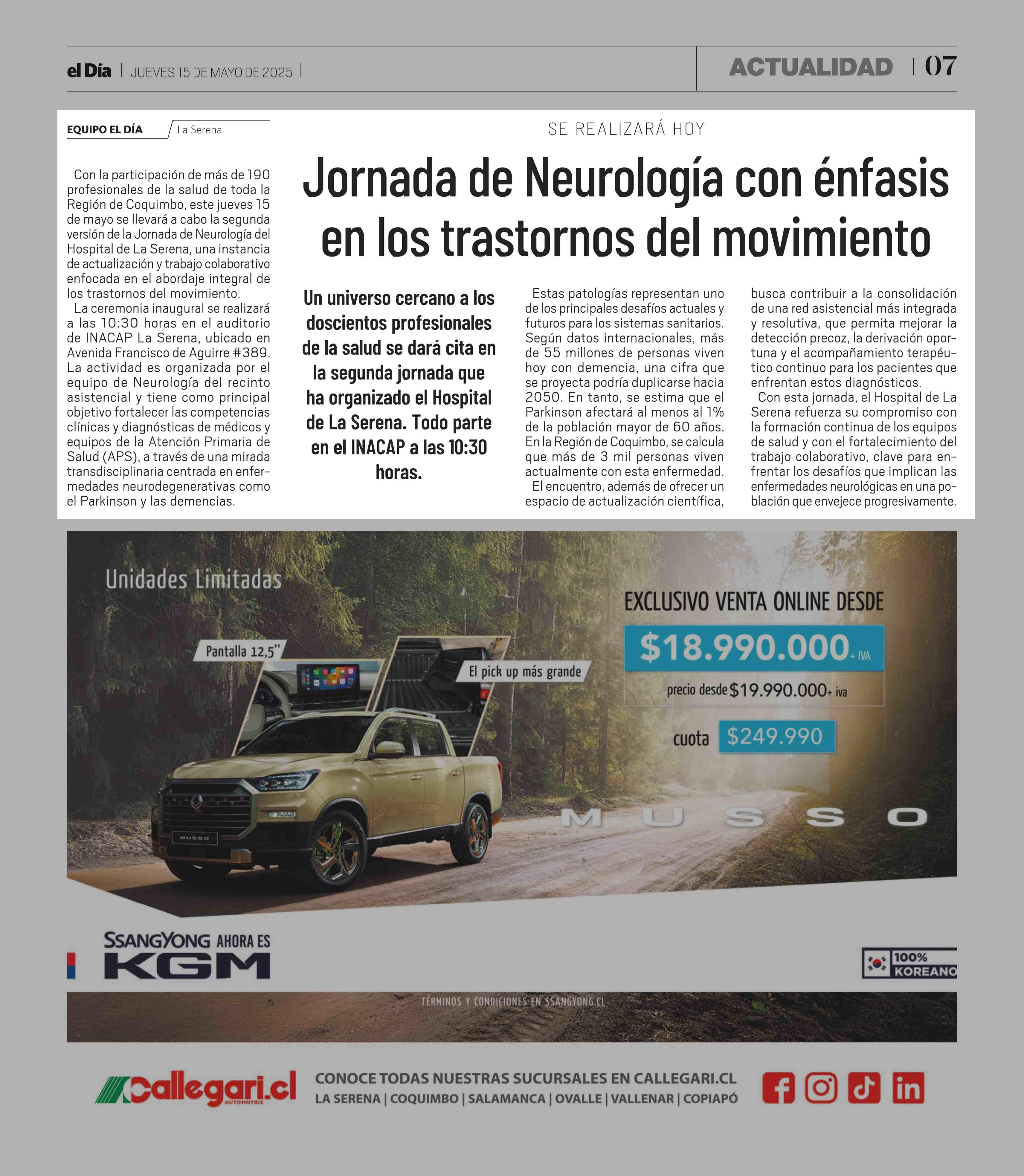 Jornada de Neurología con énfasis en los trastornos del movimiento 15-05-2025 El Día |