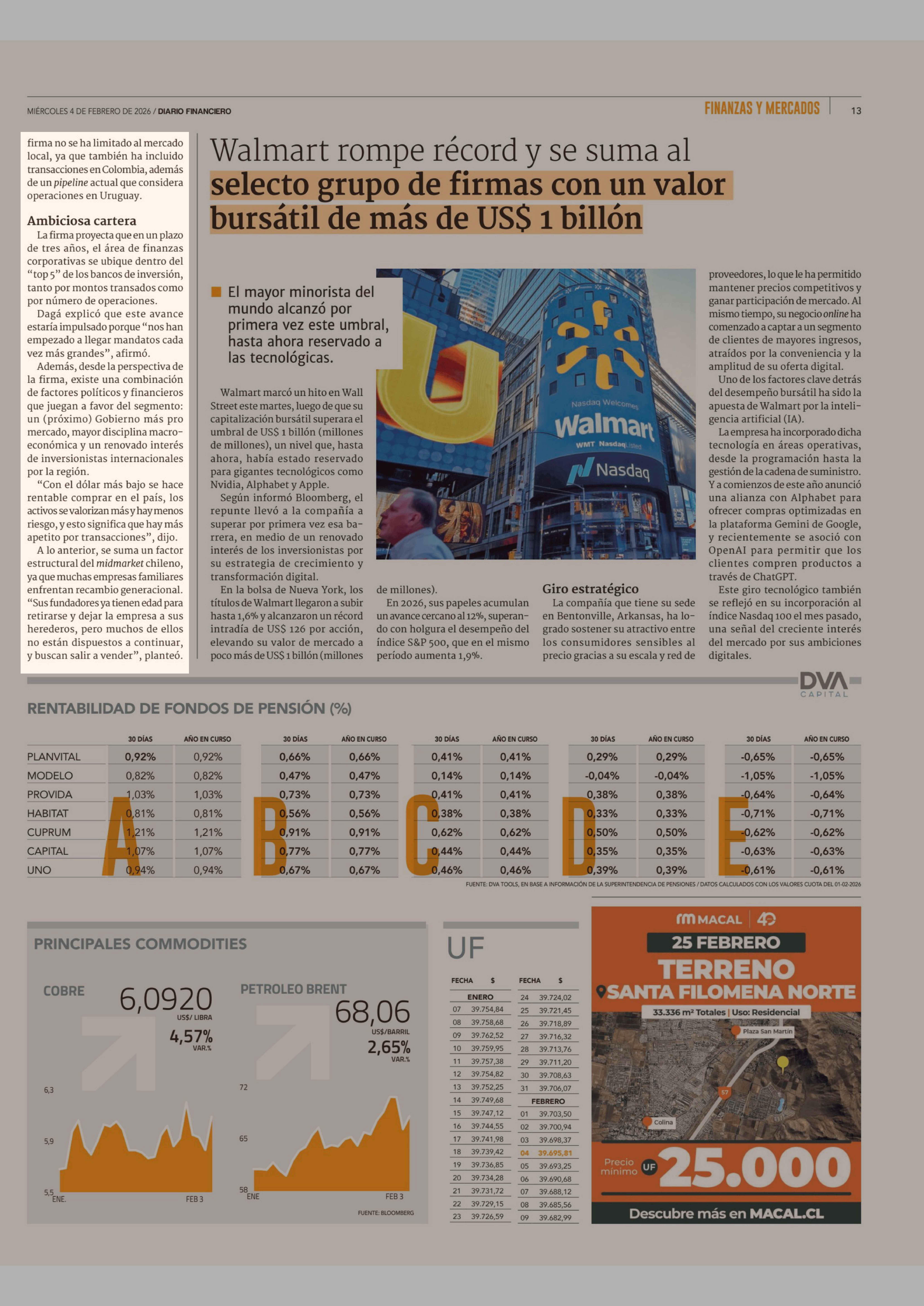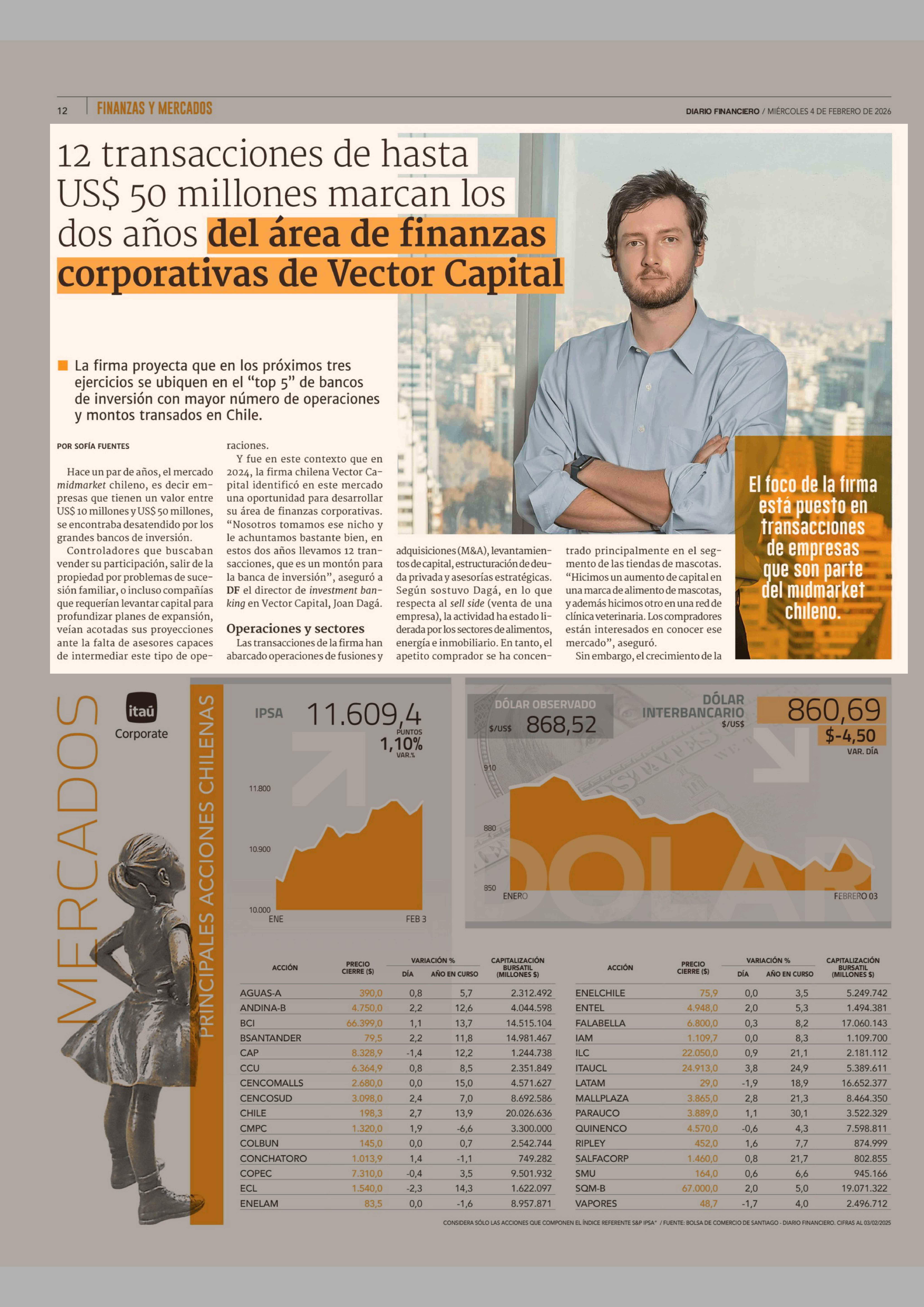 12 Transacciones de hasta US$ 50 millones marcan los dos años del área de finanzas corporativas de Vector Capital 04-02-2026 Diario Financiero |
