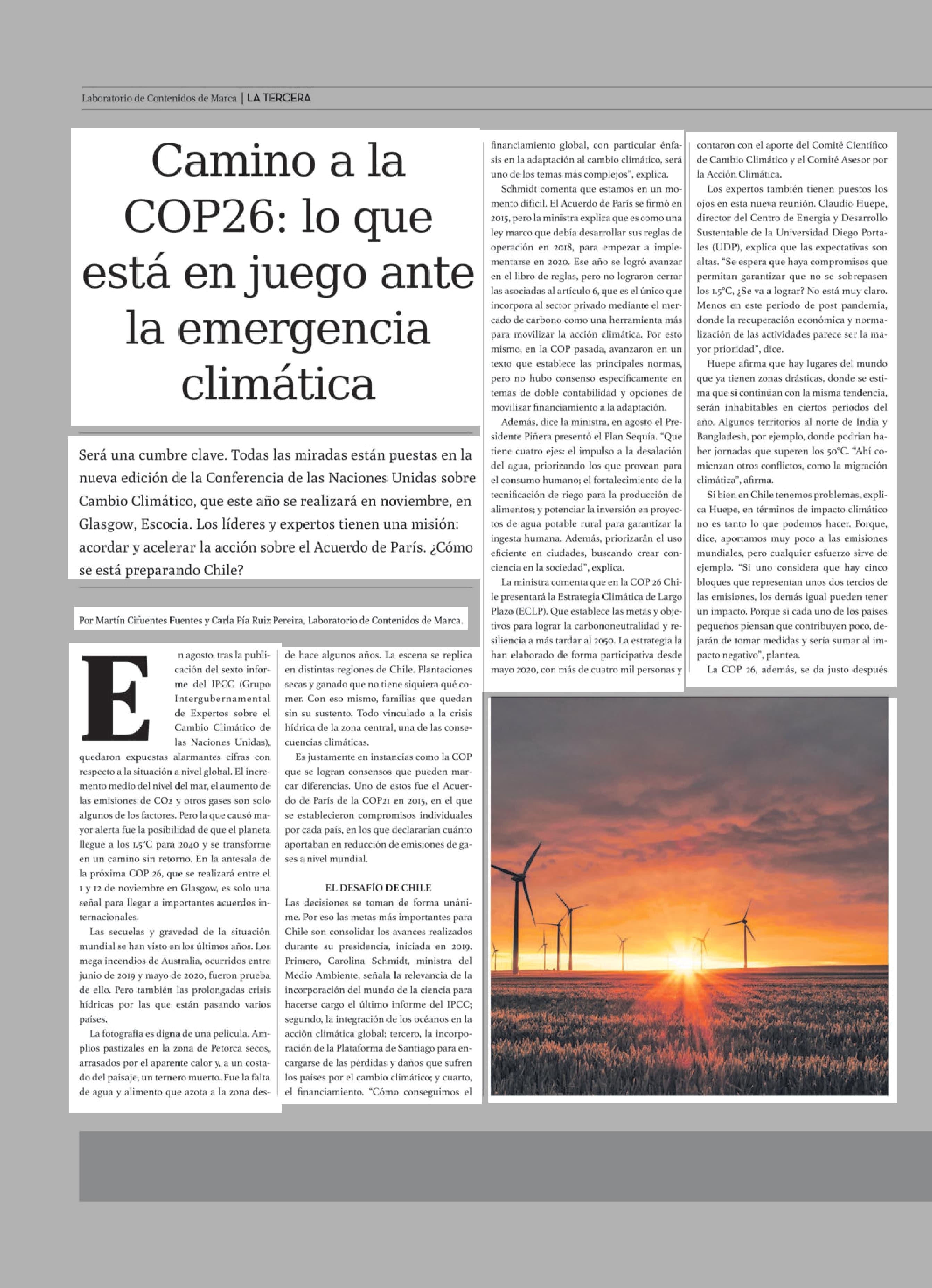 Camino a la COP26: lo que está en juego ante la emergencia climática 03-10-2021 La Tercera |