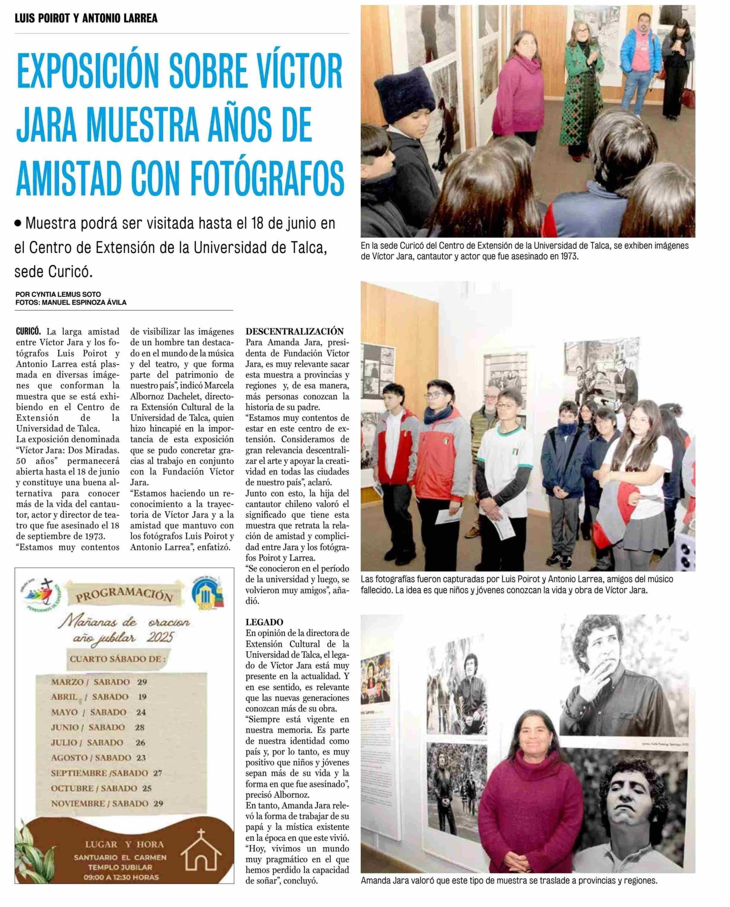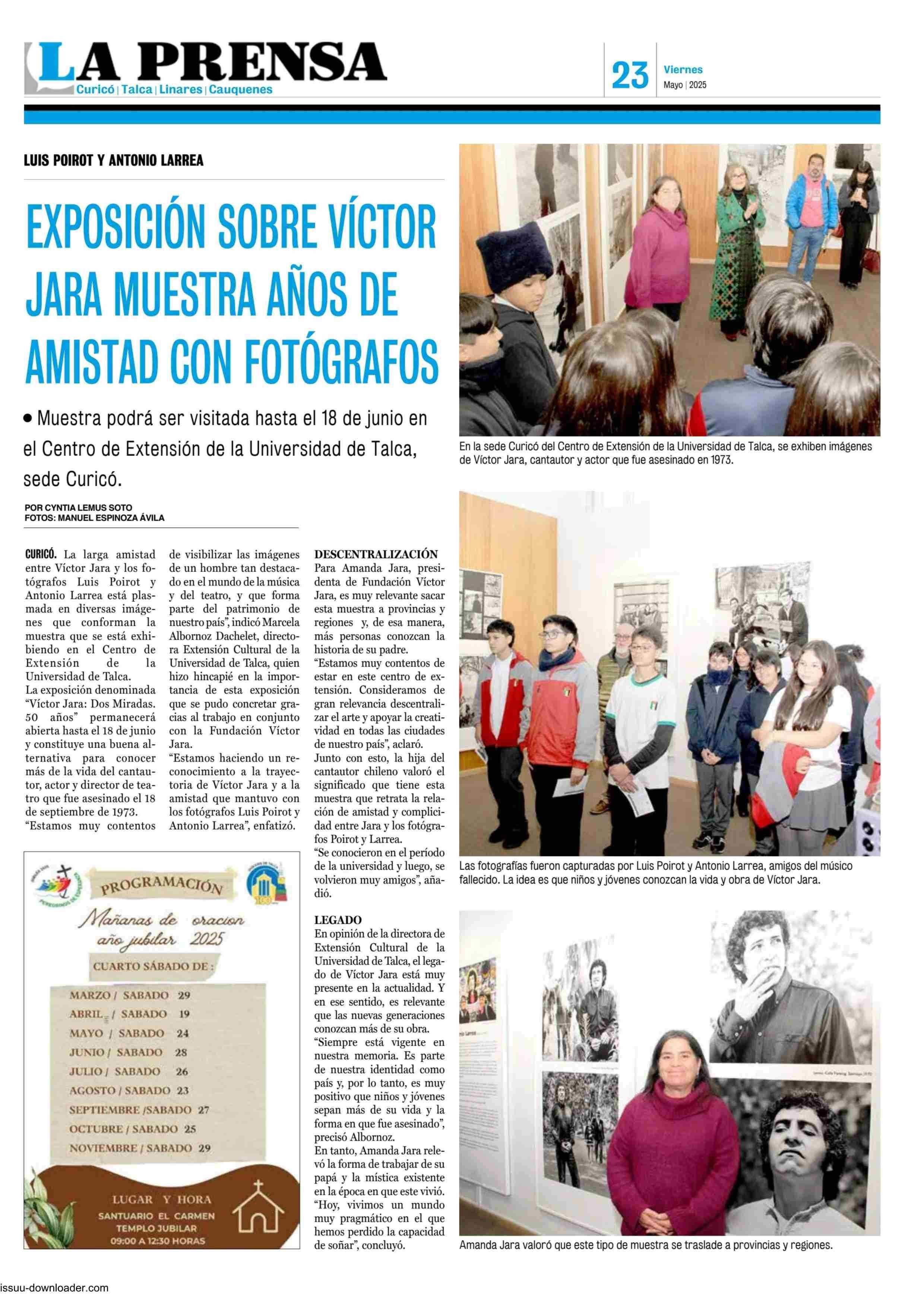 EXPOSICIÓN SOBRE VÍCTOR JARA MUESTRA AÑOS DE AMISTAD CON FOTÓGRAFOS 23-05-2025 La Prensa de Curicó |