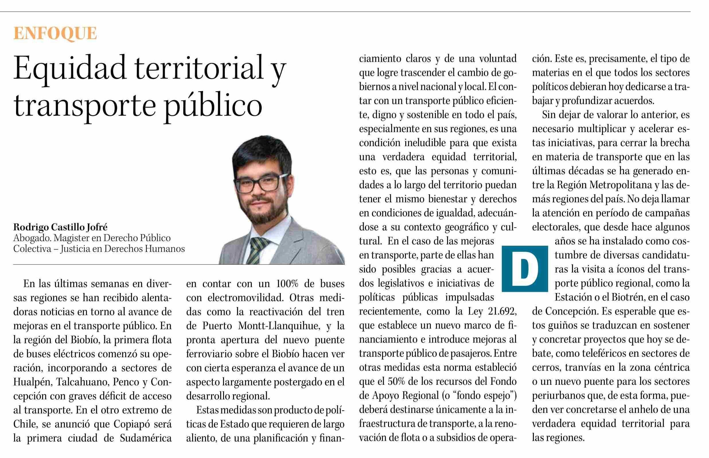 COLUMNAS DE OPINIÓN: Equidad territorial y transporte público 20-06-2025 Diario Concepción |