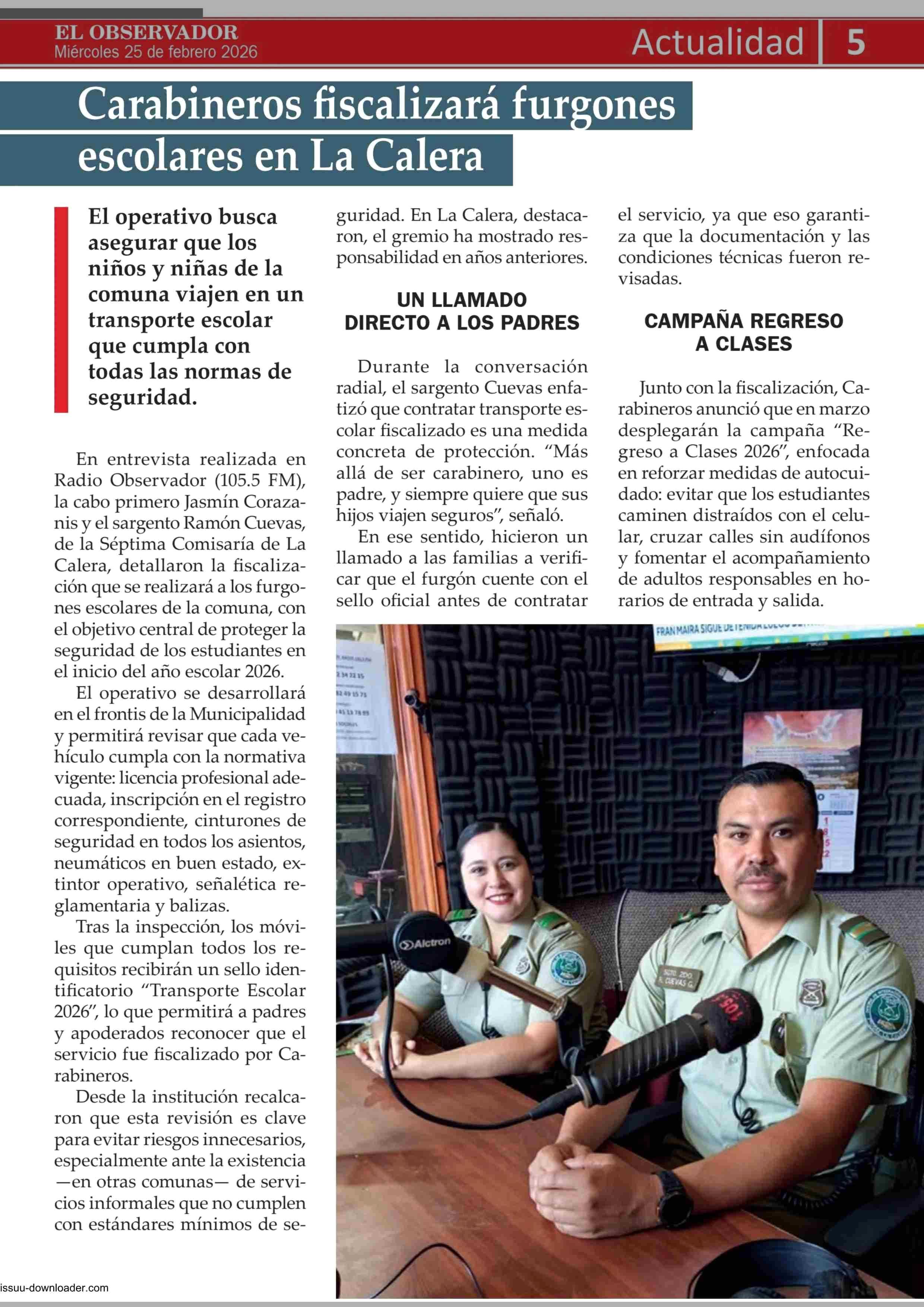 Título: Carabineros fiscalizará furgones escolares en La Calera