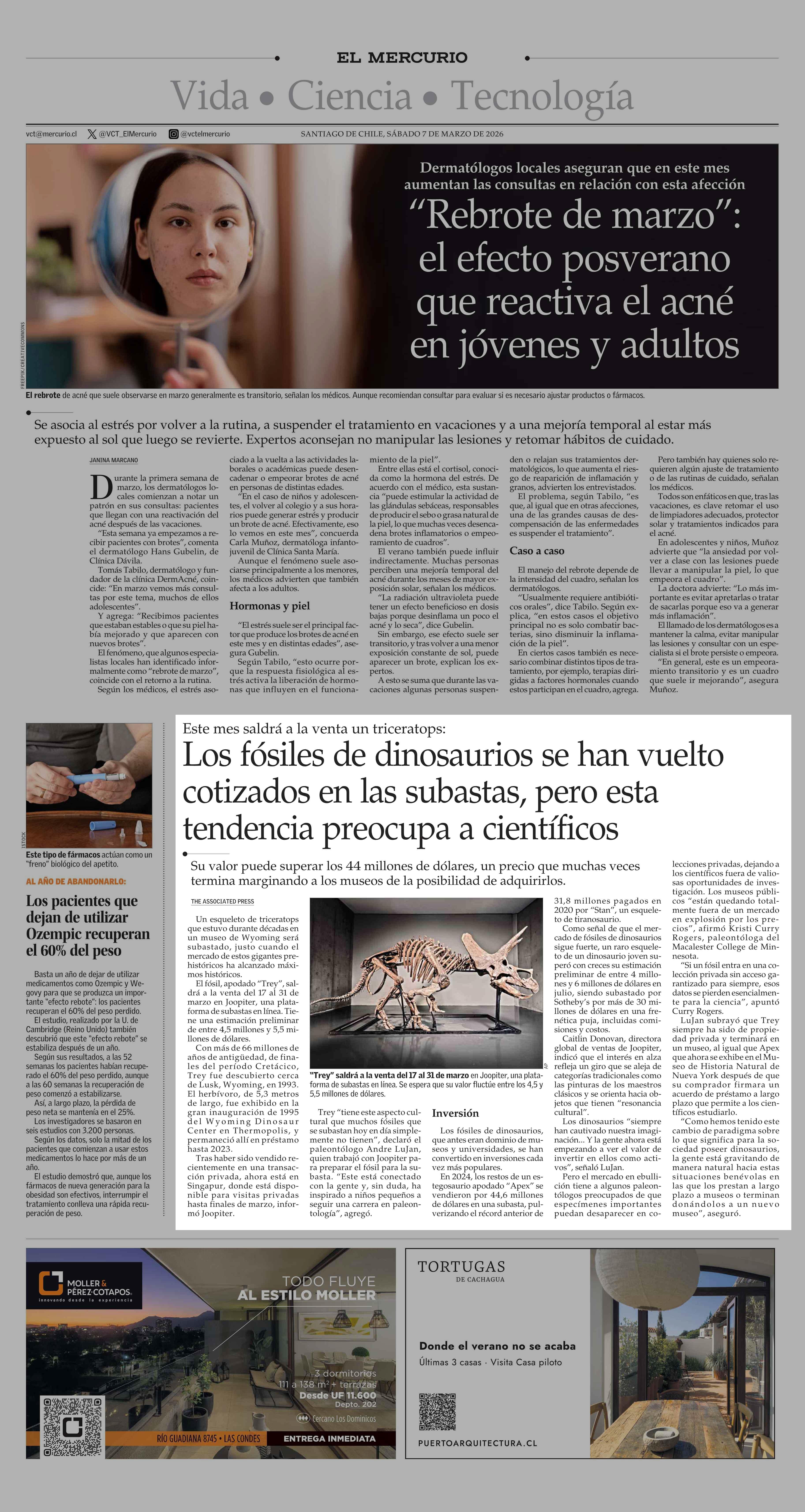 Los fósiles de dinosaurios se han vuelto cotizados en las subastas, pero esta tendencia preocupa a científicos 07-03-2026 El Mercurio |