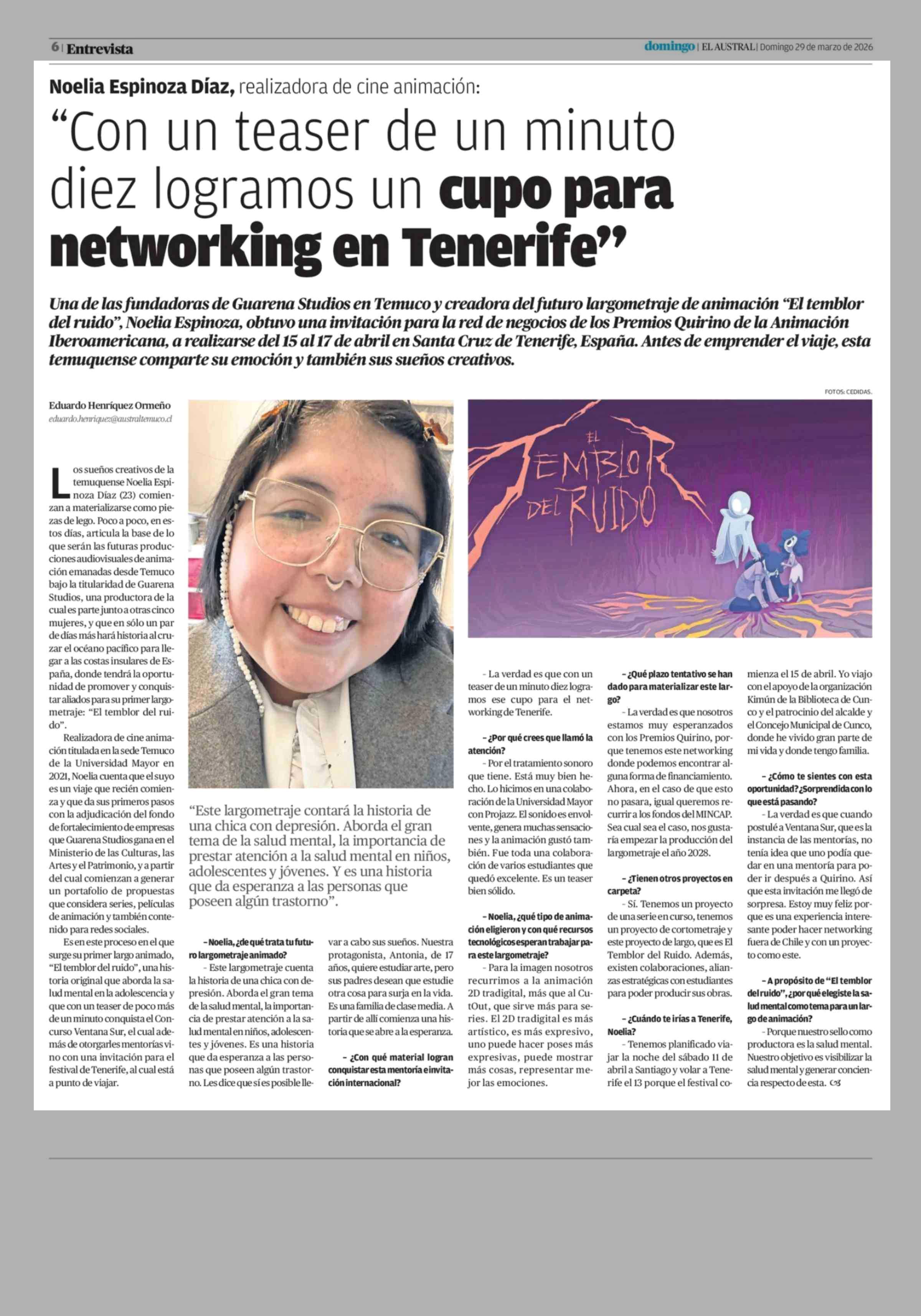 "Con un teaser de un minuto diez logramos un cupo para networking en Tenerife" 29-03-2026 El Austral de la Araucanía |