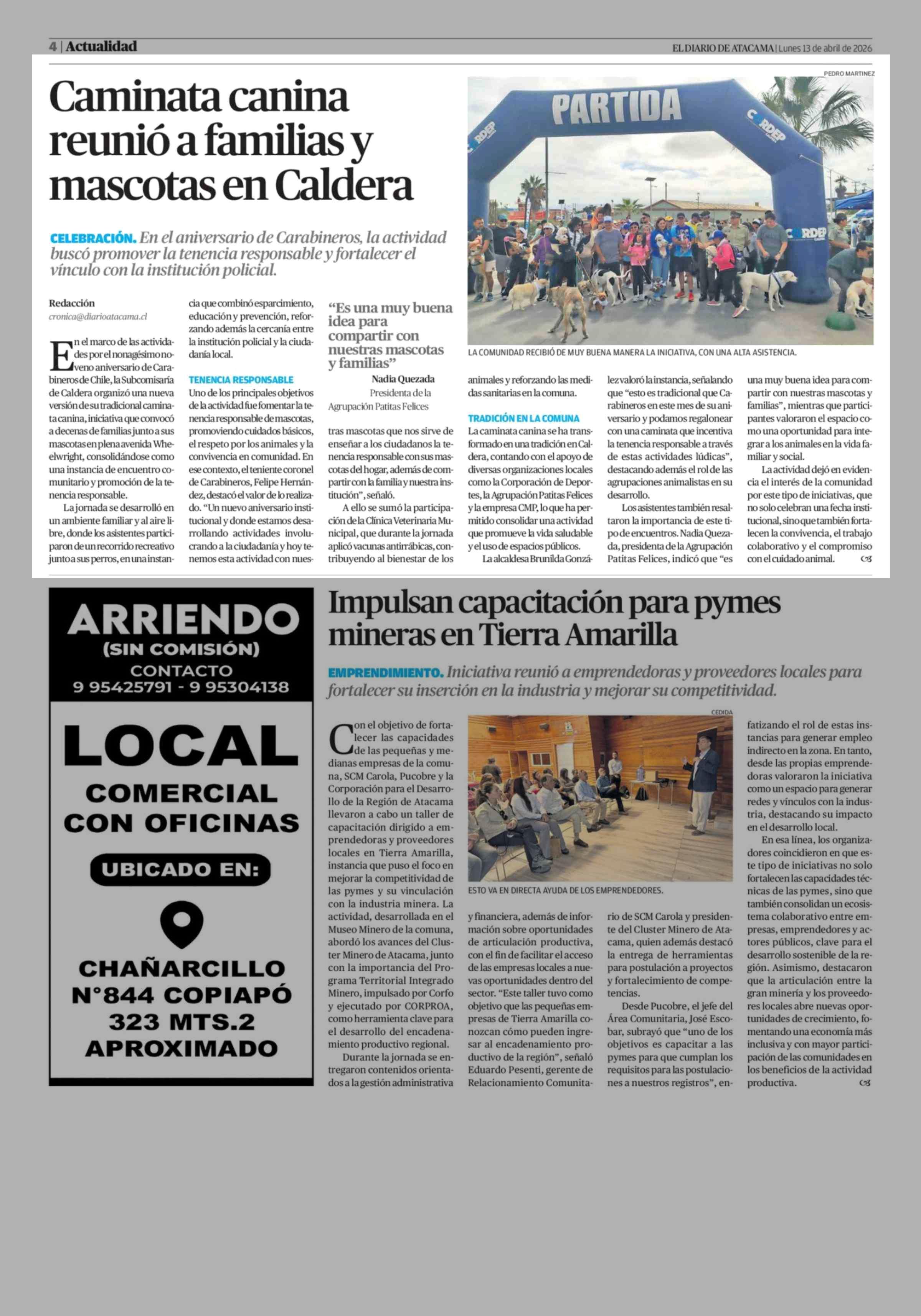 Fuente: El Diario de Atacama (El Diario de Atacama) Página(s): 4
