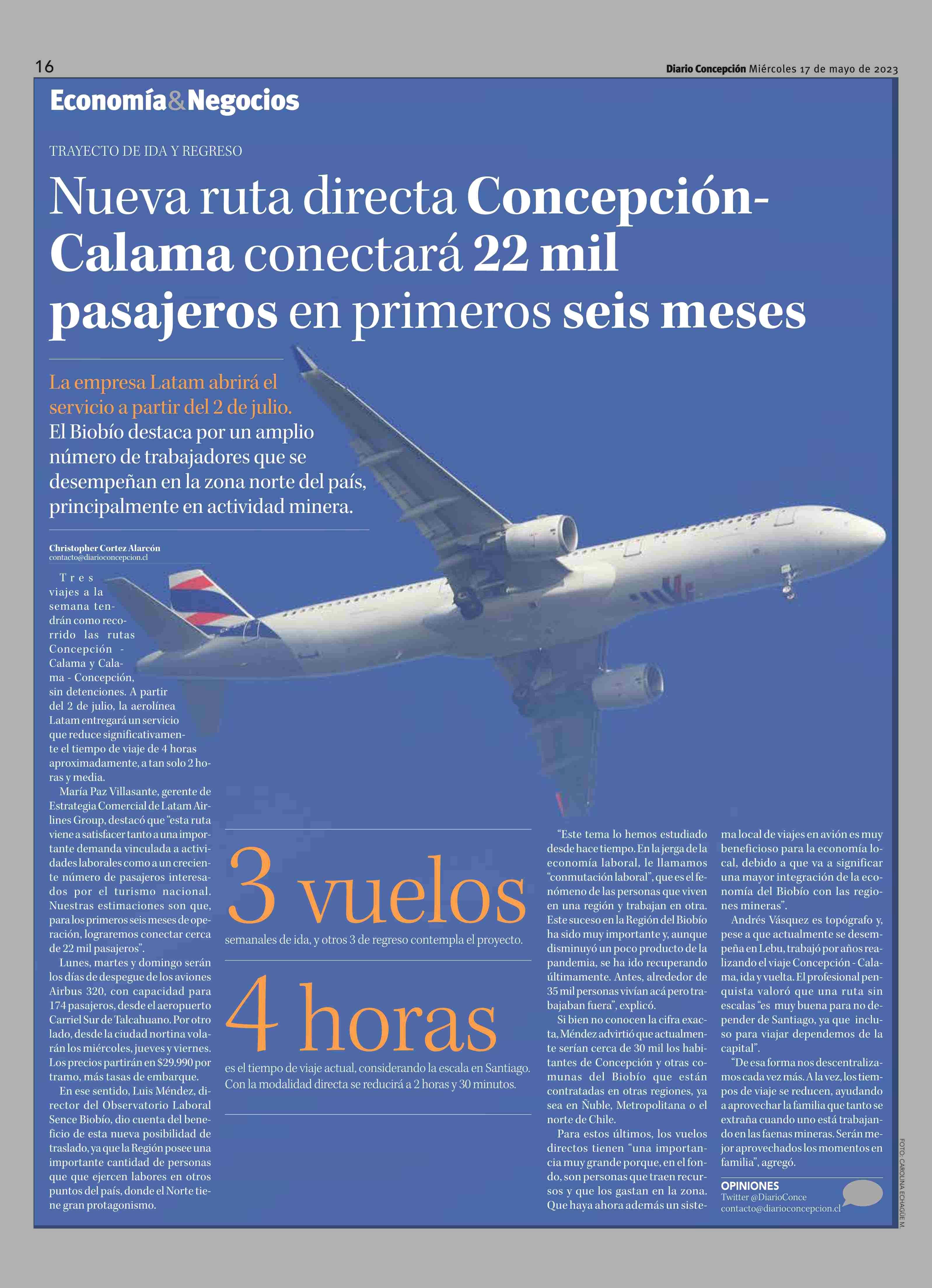 Título: Nueva ruta directa Concepción- Calama conectará 22 mil pasajeros en primeros seis meses