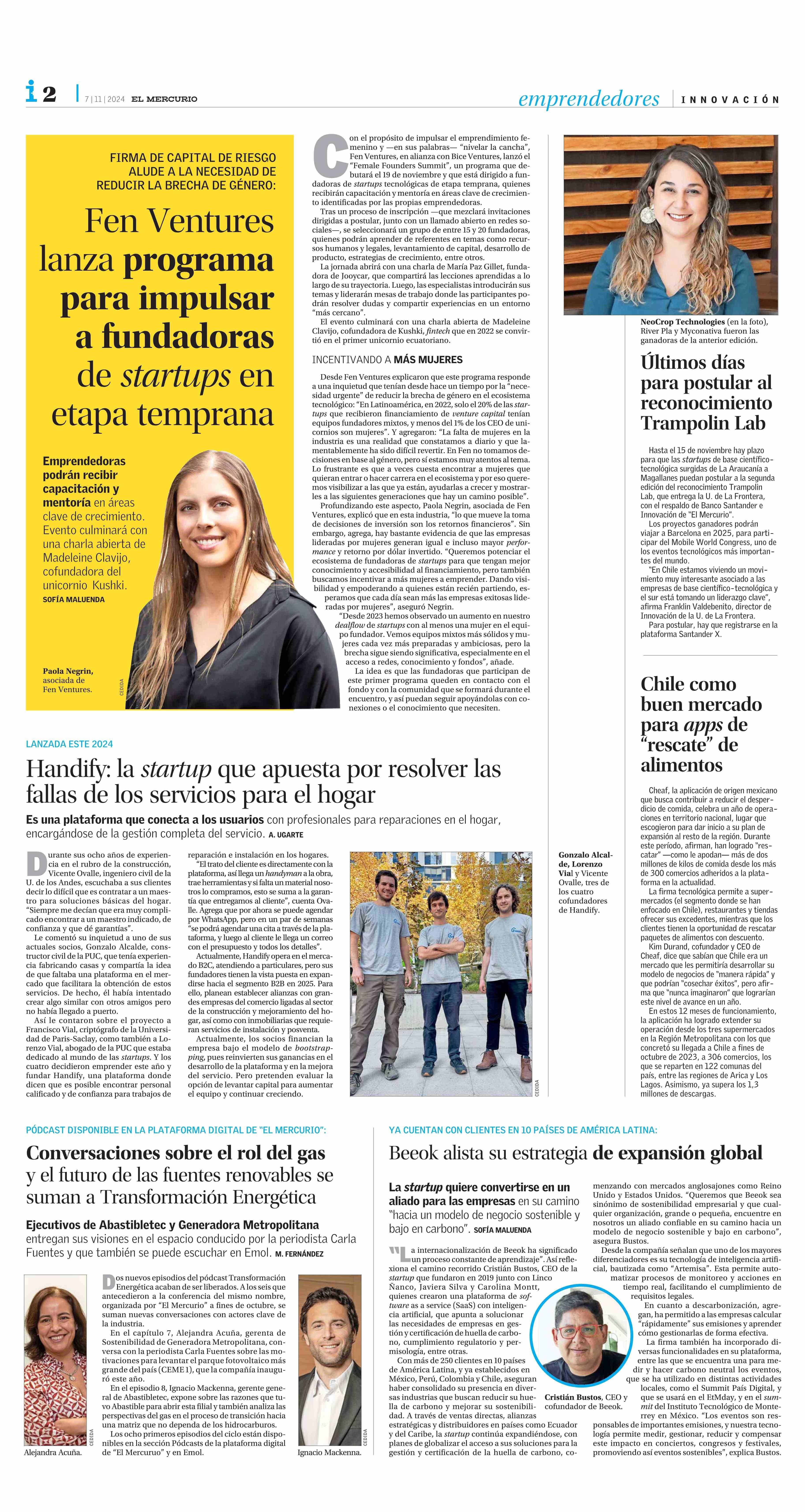 Handify: la startup que apuesta por resolver las fallas de los servicios para el hogar 07-11-2024 El Mercurio |