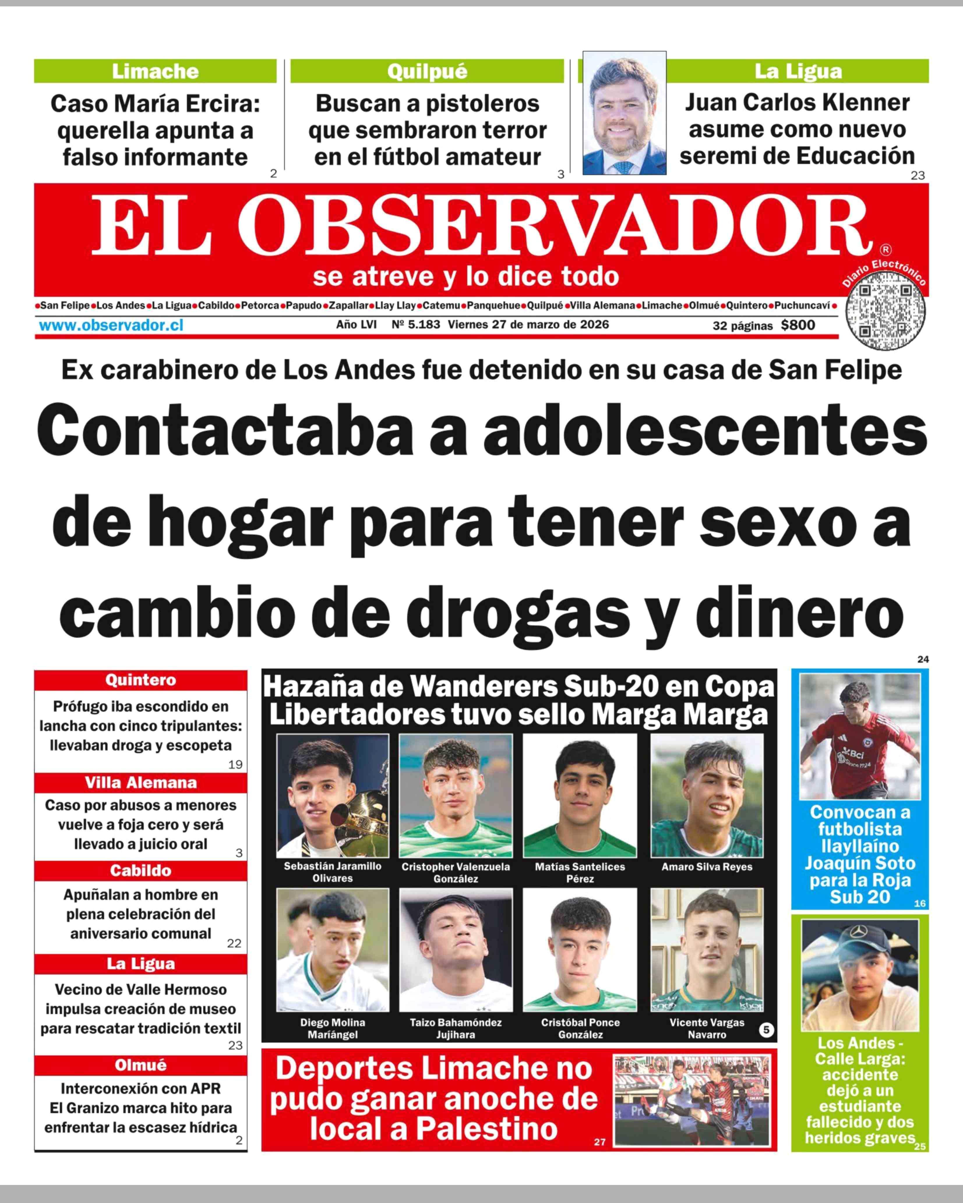 EL OBSERVADOR - CHILE- CONTRAPORTADA 27-03-2026 El Observador |