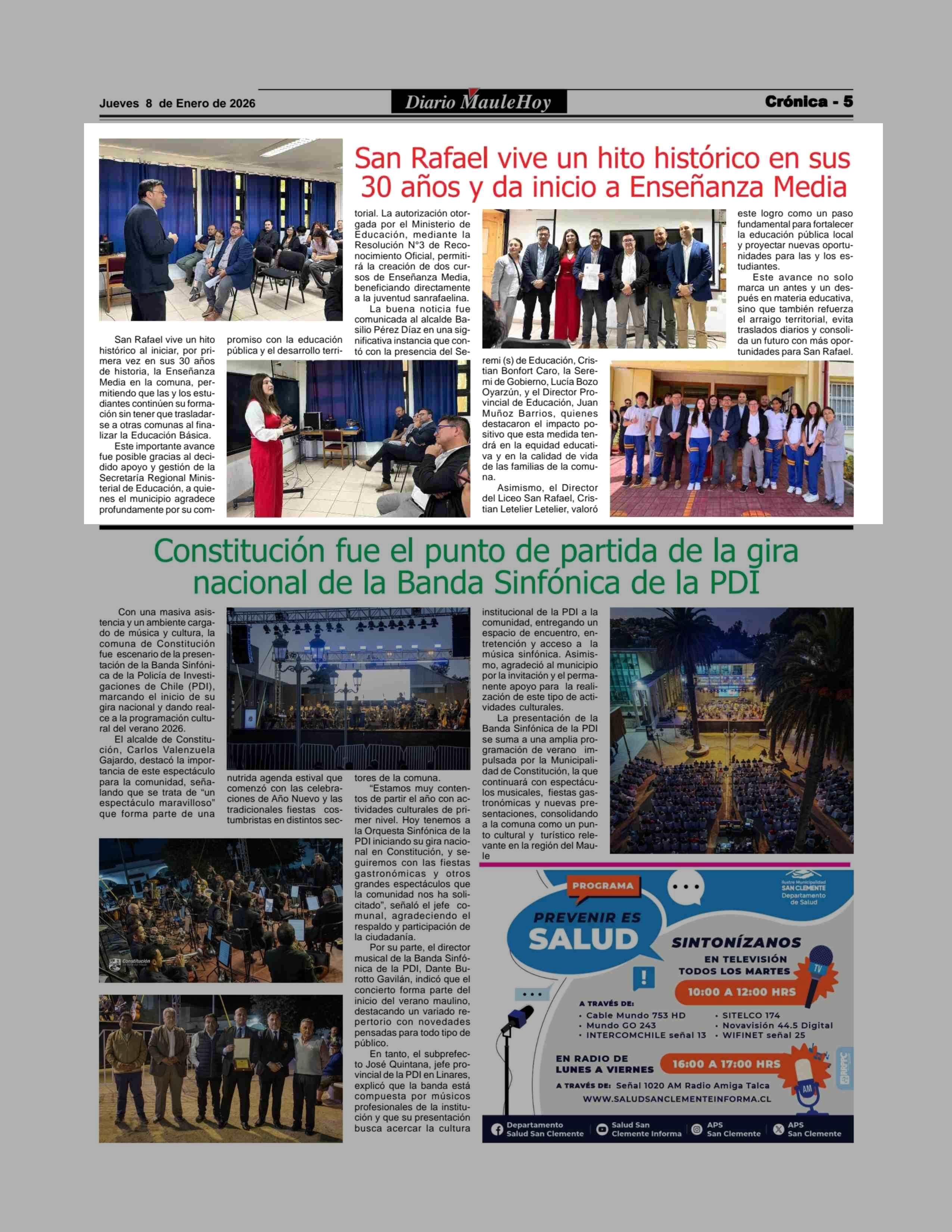 | Fecha: | 08-01-2026 | Sector: | Noticia general | Región: | Región del Maule |