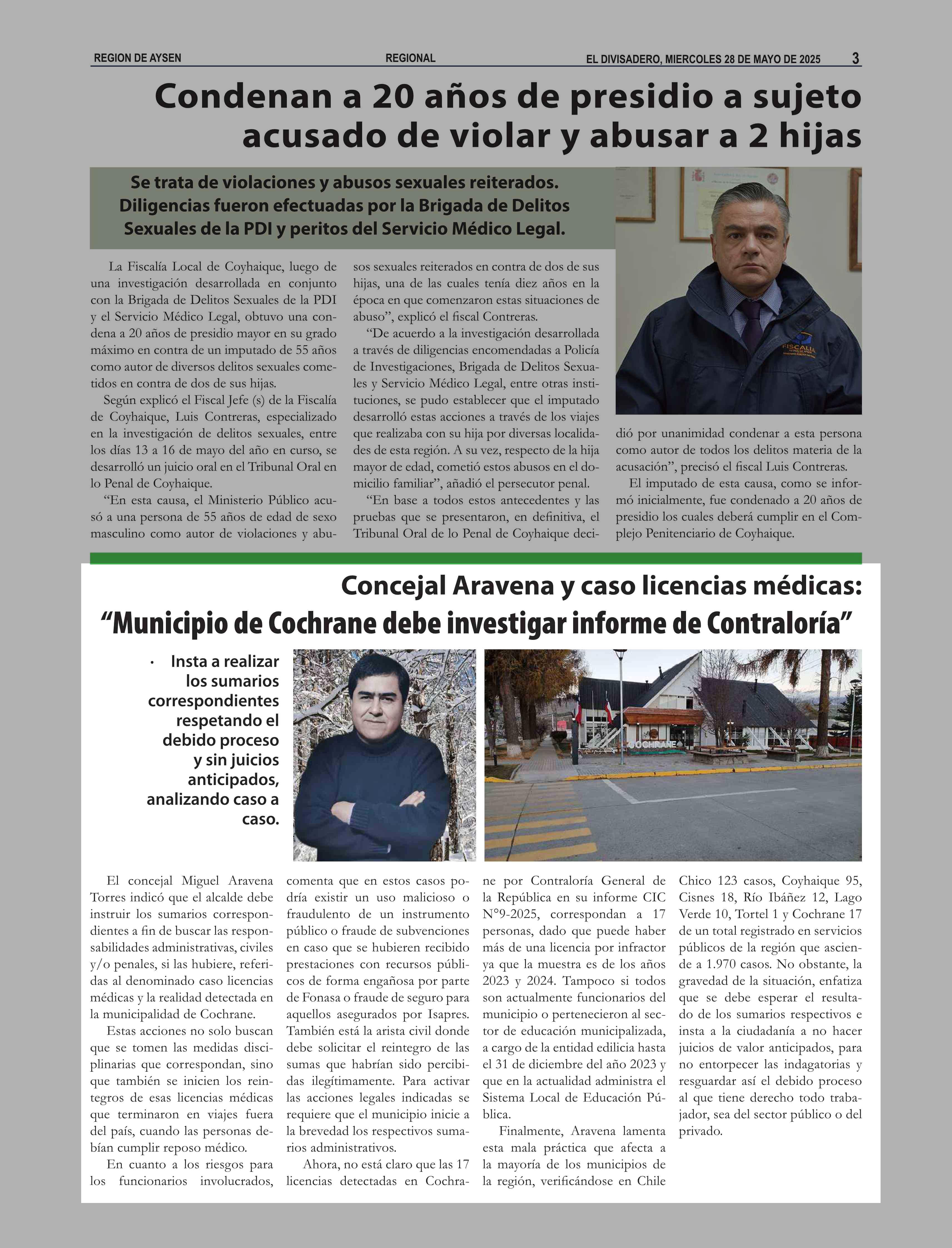 Concejal Aravena y caso licencias médicas: “Municipio de Cochrane debe investigar informe de Contraloría” 28-05-2025 El Divisadero |