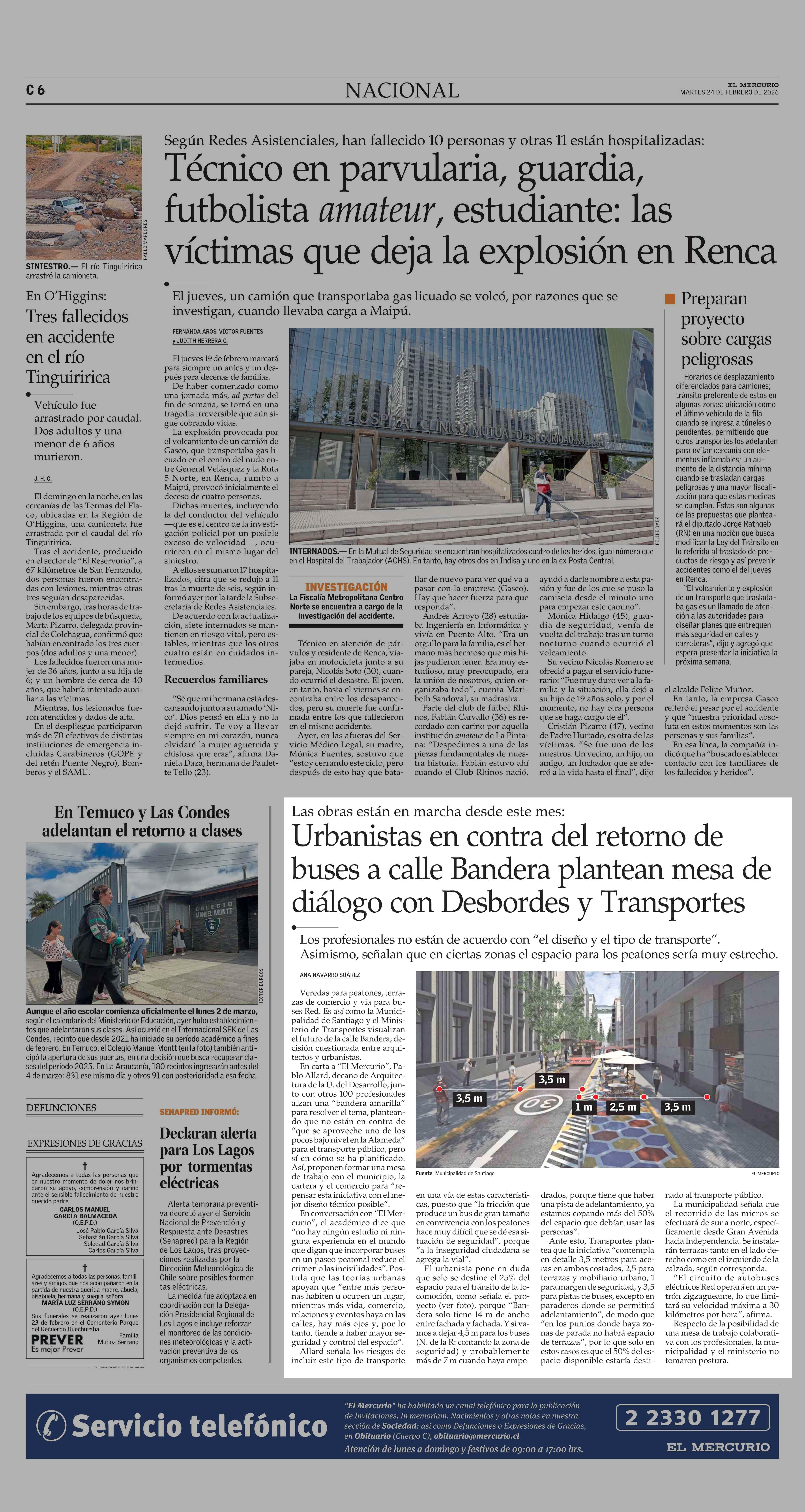 Urbanistas en contra del retorno de buses a calle Bandera plantean mesa de diálogo con Desbordes y Transportes 24-02-2026 El Mercurio |