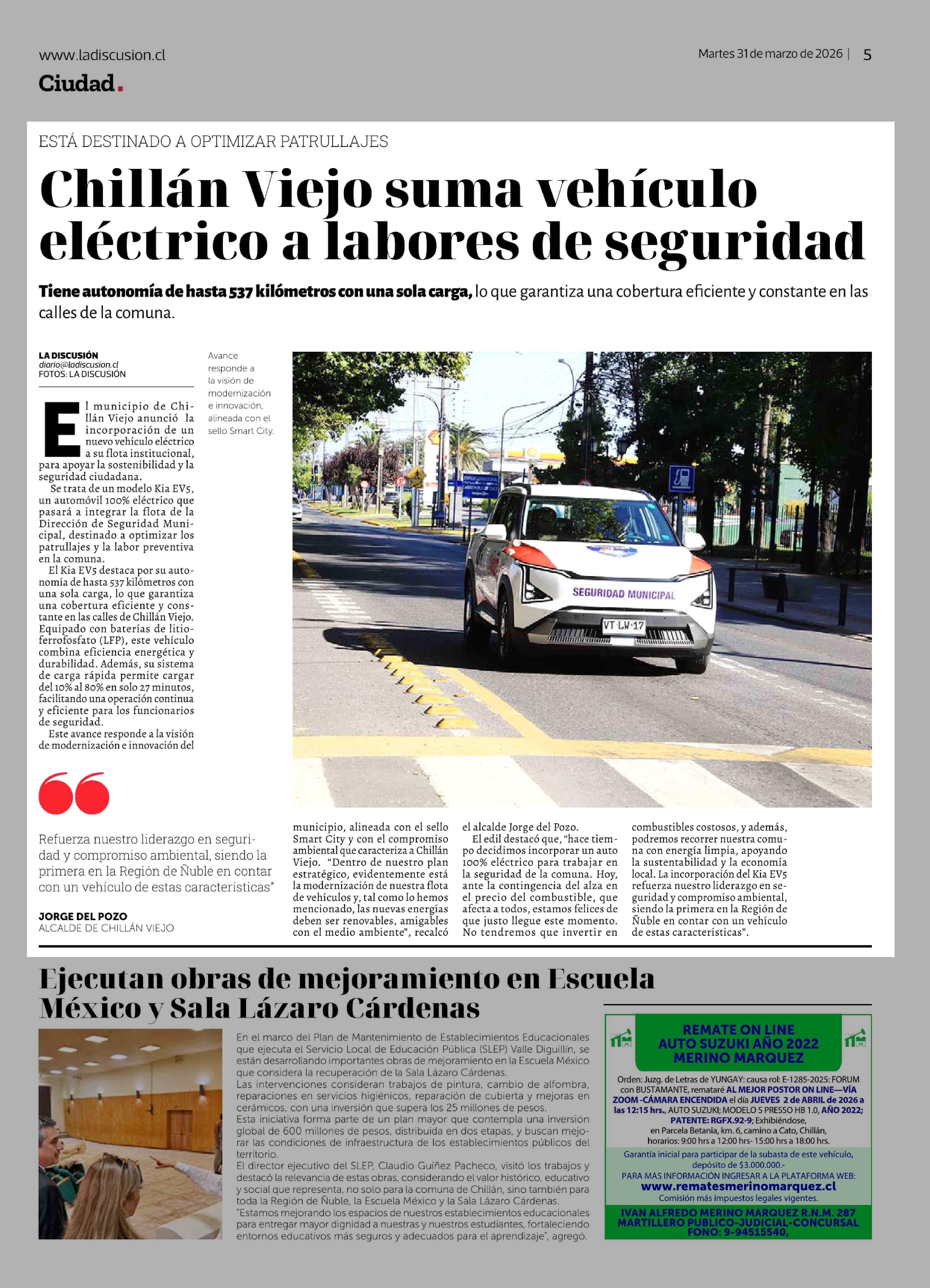 Fecha: 31-03-2026 Sector: Noticia general Región: Región del Ñuble