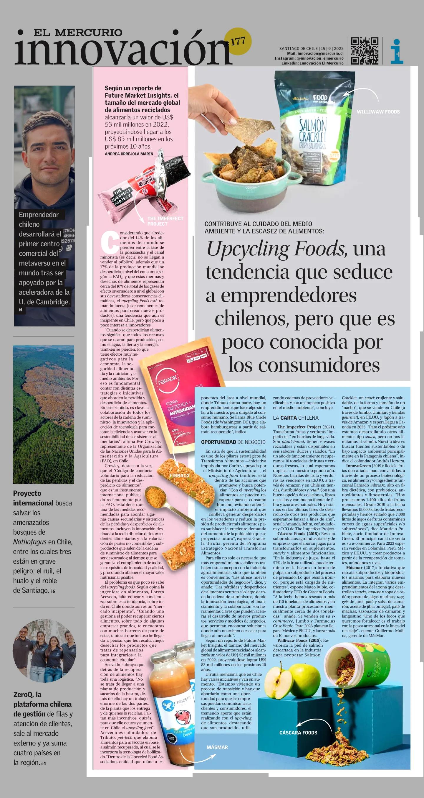 Upcycling Foods, una tendencia que seduce a emprendedores chilenos, pero que es poco conocida por los consumidores 15-09-2022 El Mercurio |