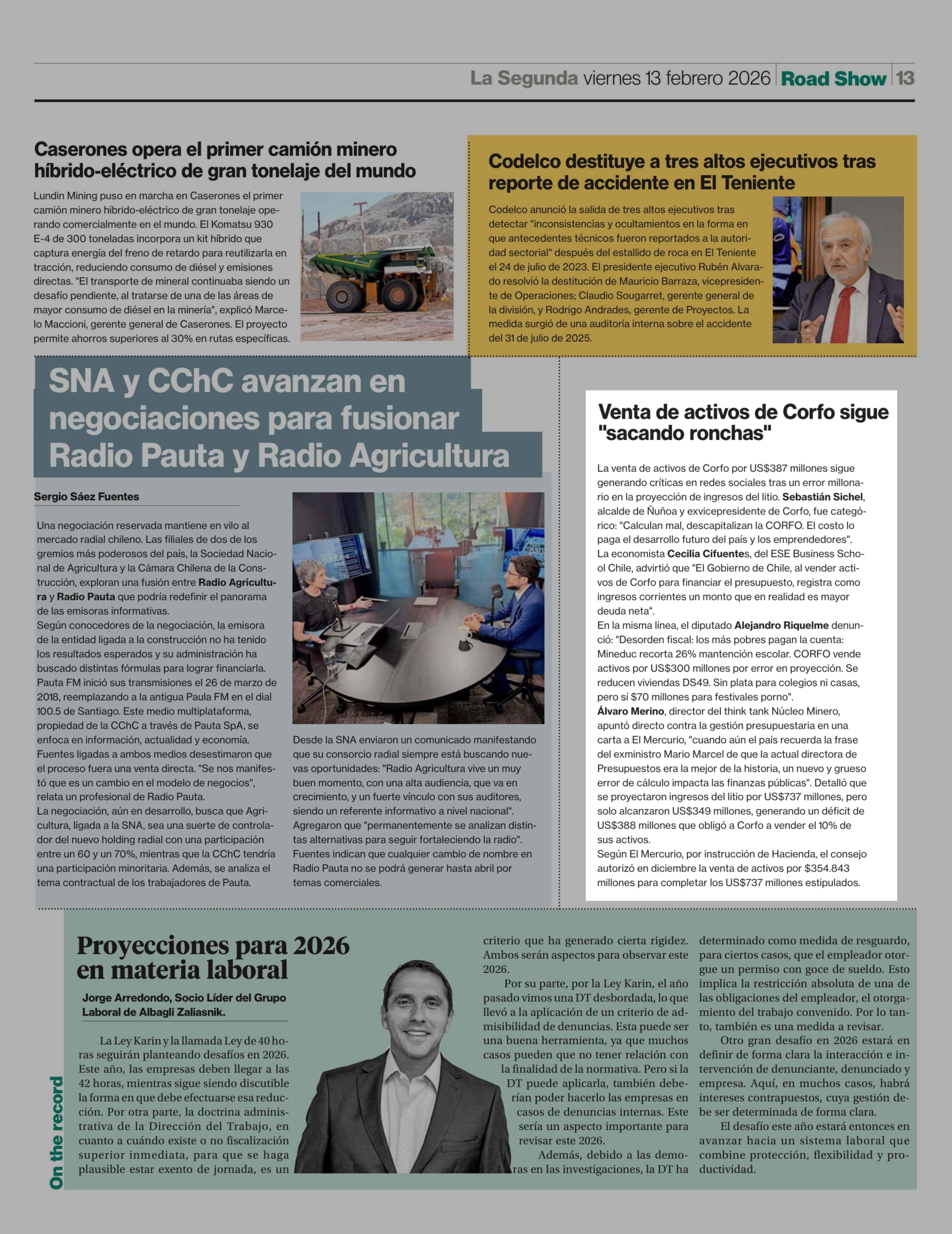 Venta de activos de Corfo sigue "sacando ronchas" 13-02-2026 La Segunda |