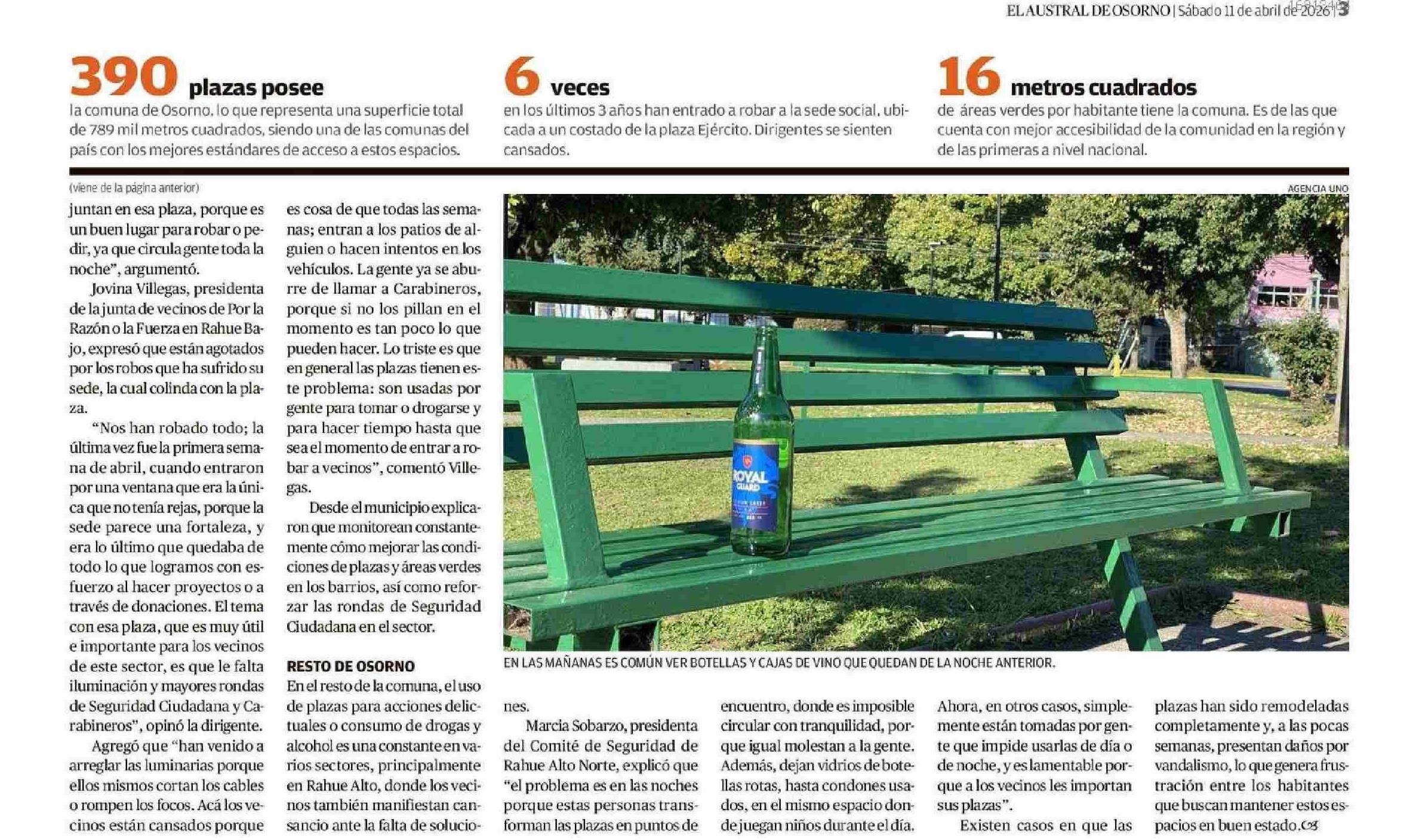 Denuncian foco de delincuencia e inseguridad en plaza de Rahue Bajo 11-04-2026 El Austral de Osorno |
