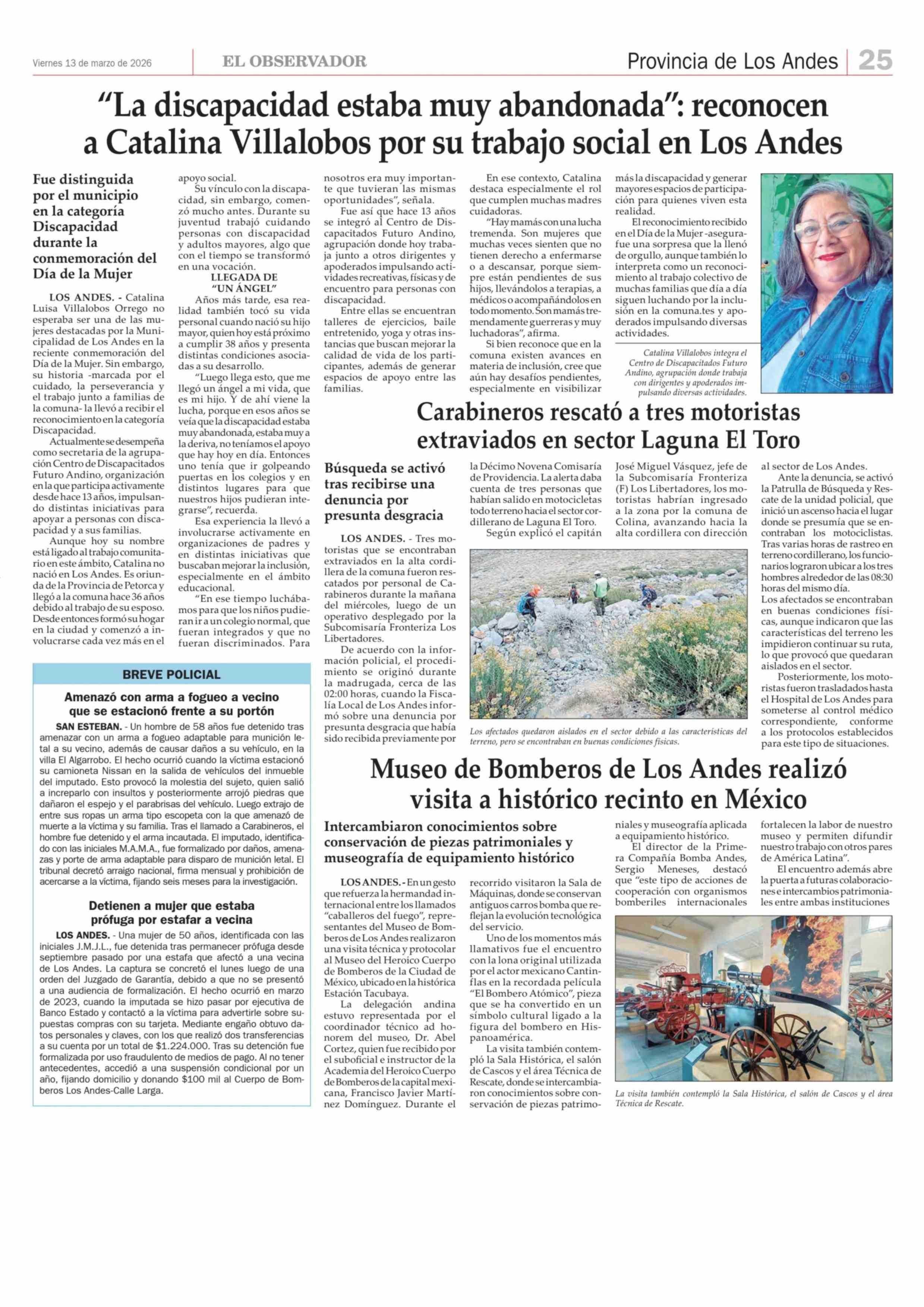 Museo de Bomberos de Los Andes realizó visita a histórico recinto en México 13-03-2026 El Observador |