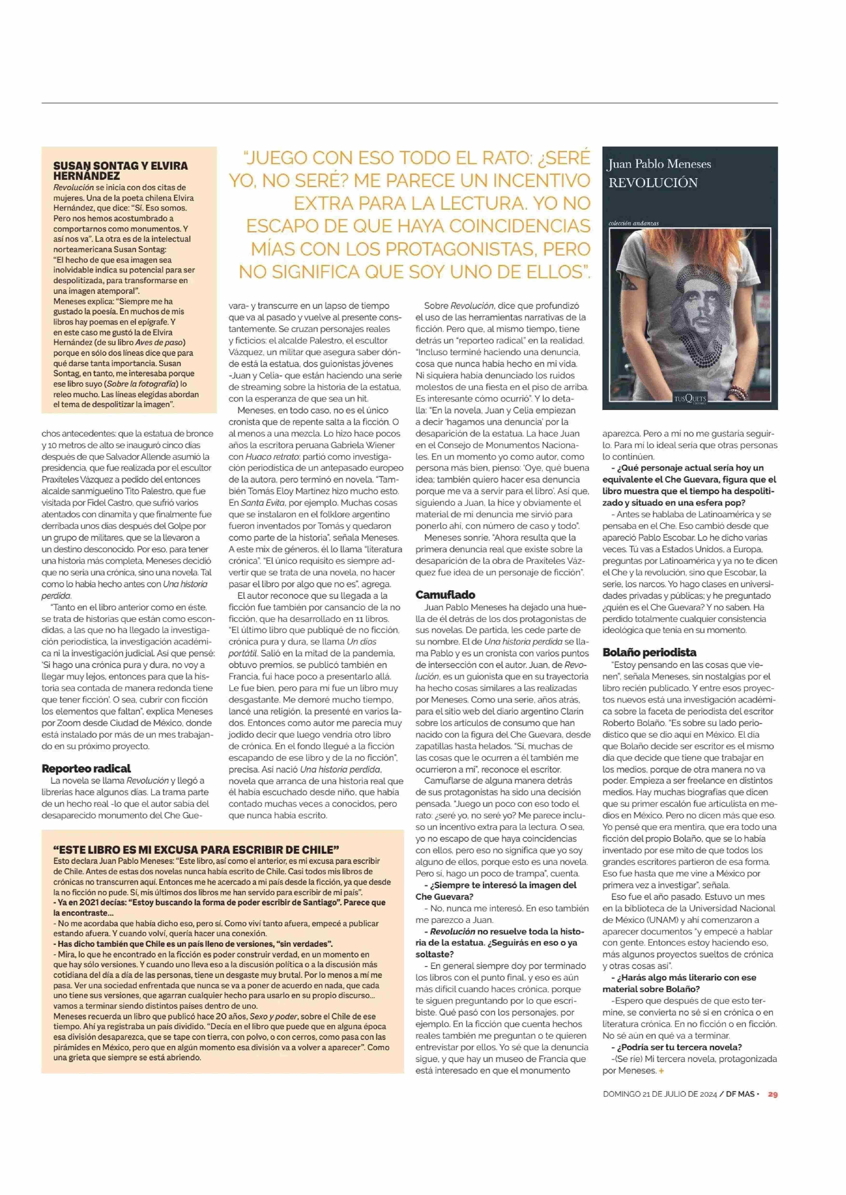 ¿DÓNDE ESTA LA ESTATUA DEL CHE GUEVARA PERDIDA EN CHILE?: EL ACERTIJO DEL NUEVO LIBRO DE JUAN PABLO MENESES 21-07-2024 Diario Financiero |