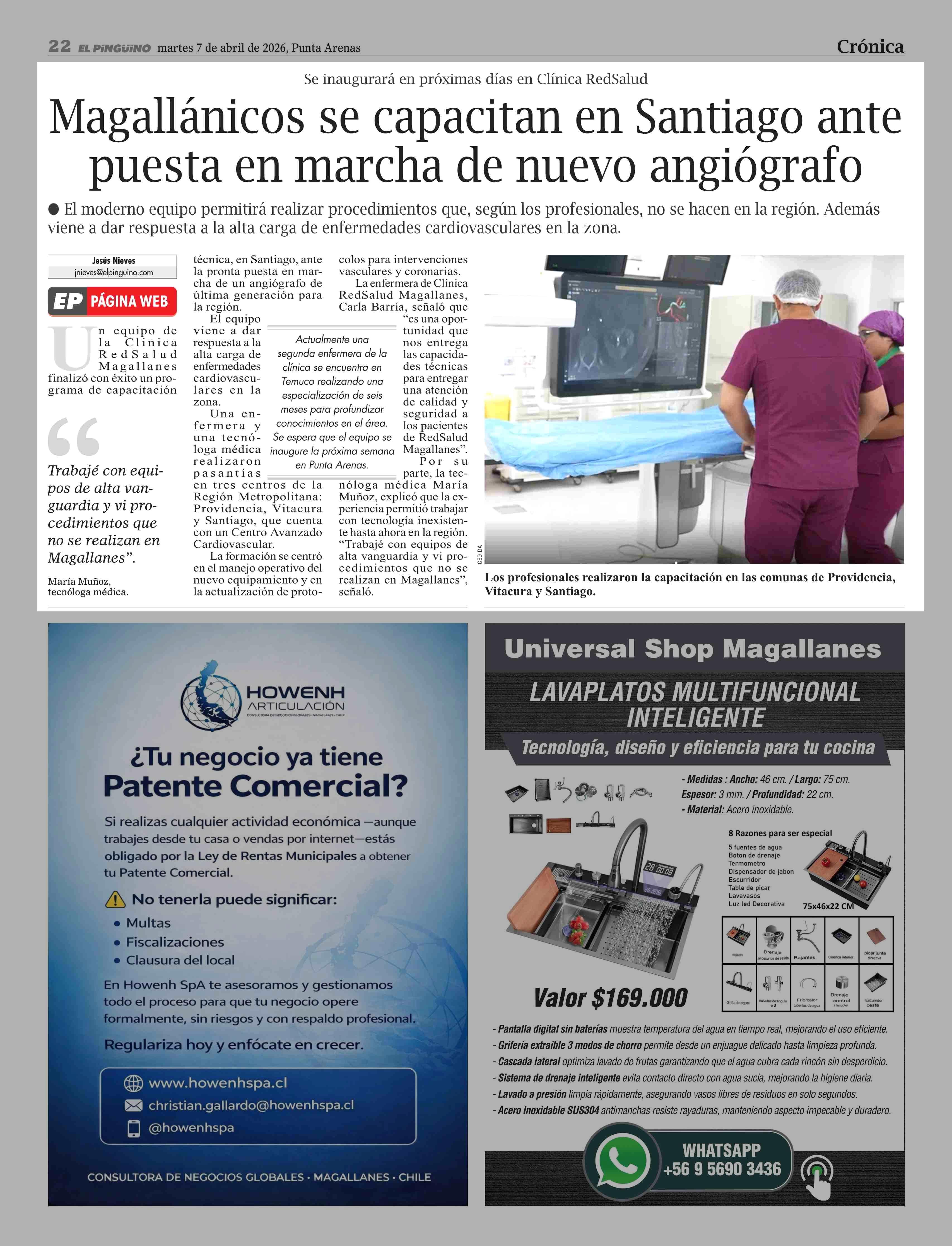 Magallánicos se capacitan en Santiago ante puesta en marcha de nuevo angiógrafo 07-04-2026 El Pingüino |