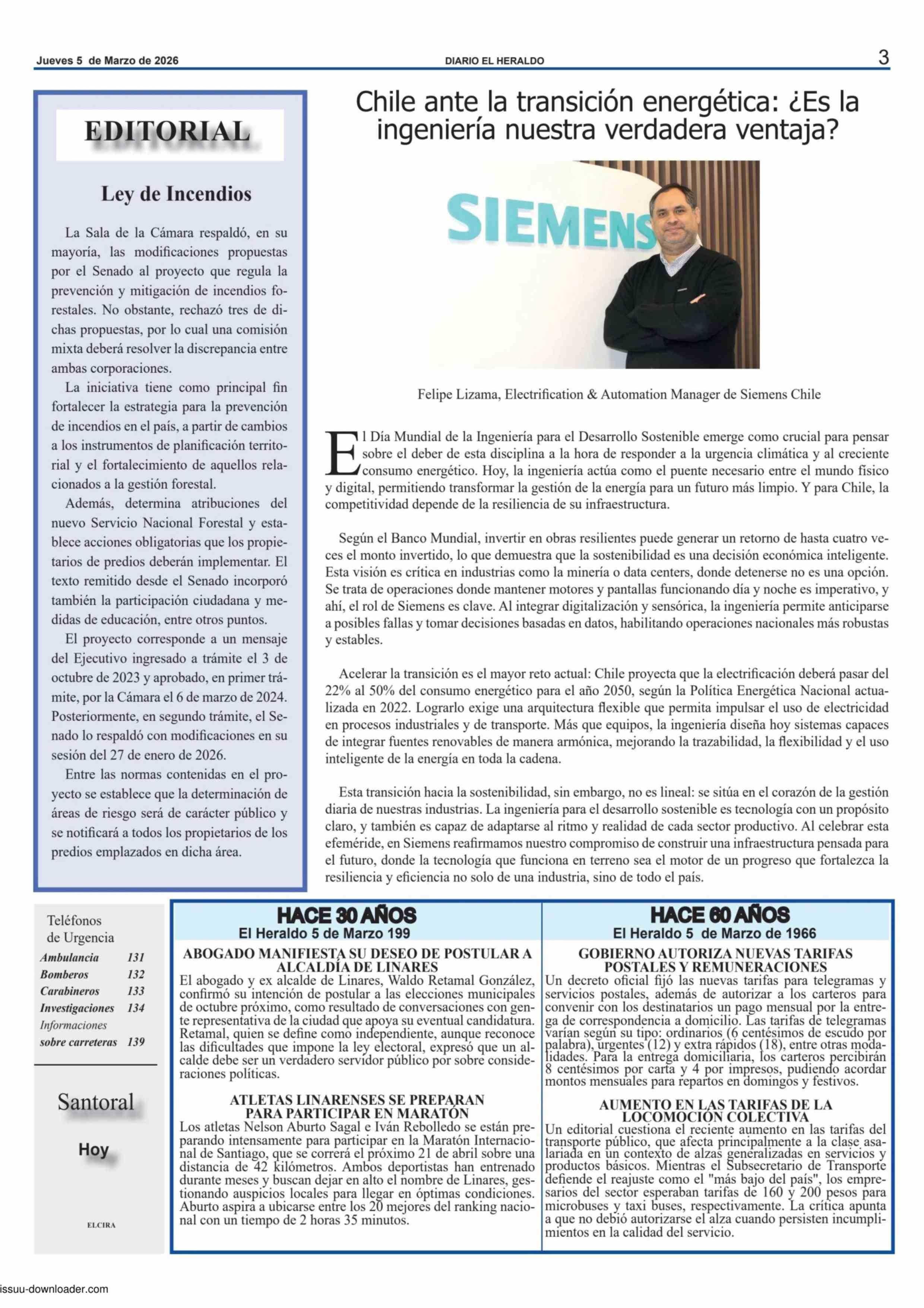 Editorial: Ley de Incendios 05-03-2026 El Heraldo |