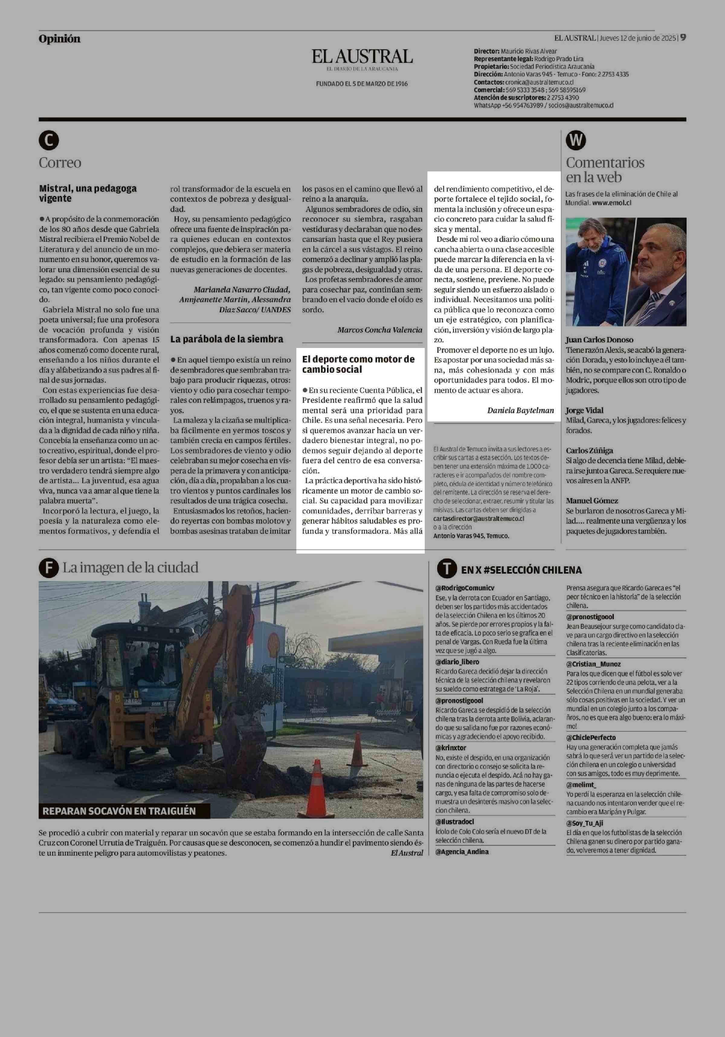 Fuente: El Austral de la Araucanía (El Austral de la Araucanía) Página(s): 9