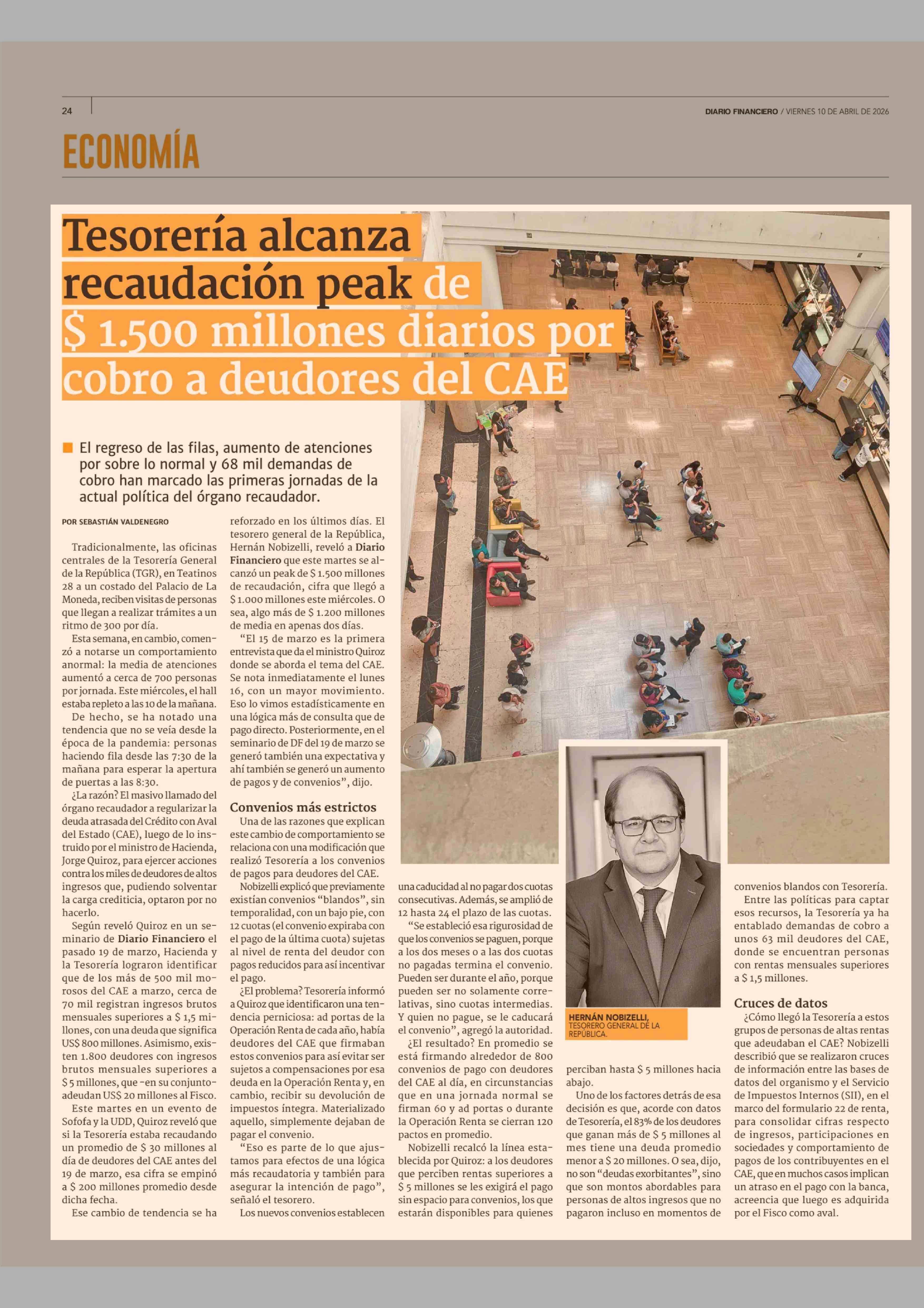 Título: Tesorería alcanza recaudación peak de $ 1.500 millones diarios por cobro a deudores del CAE