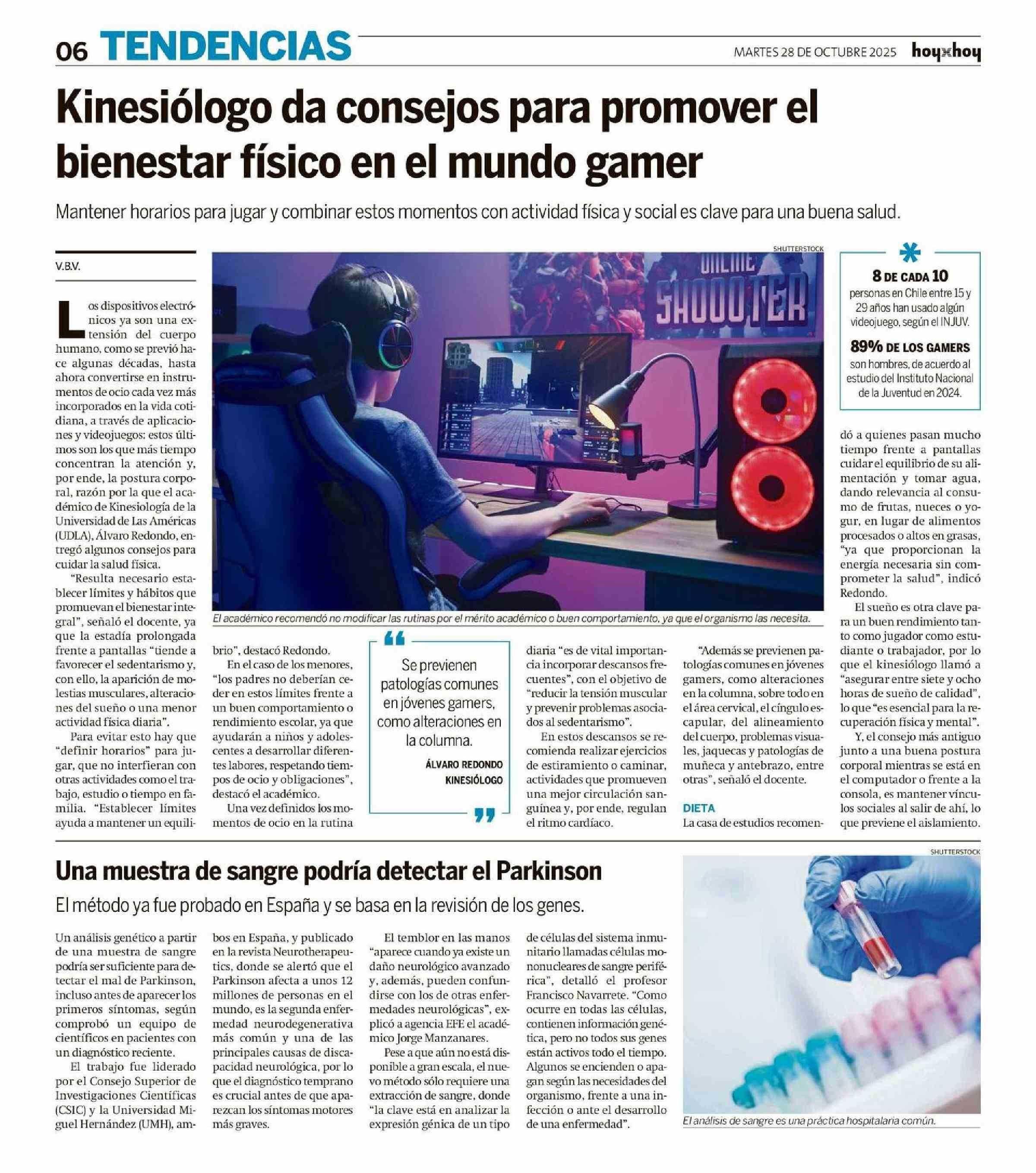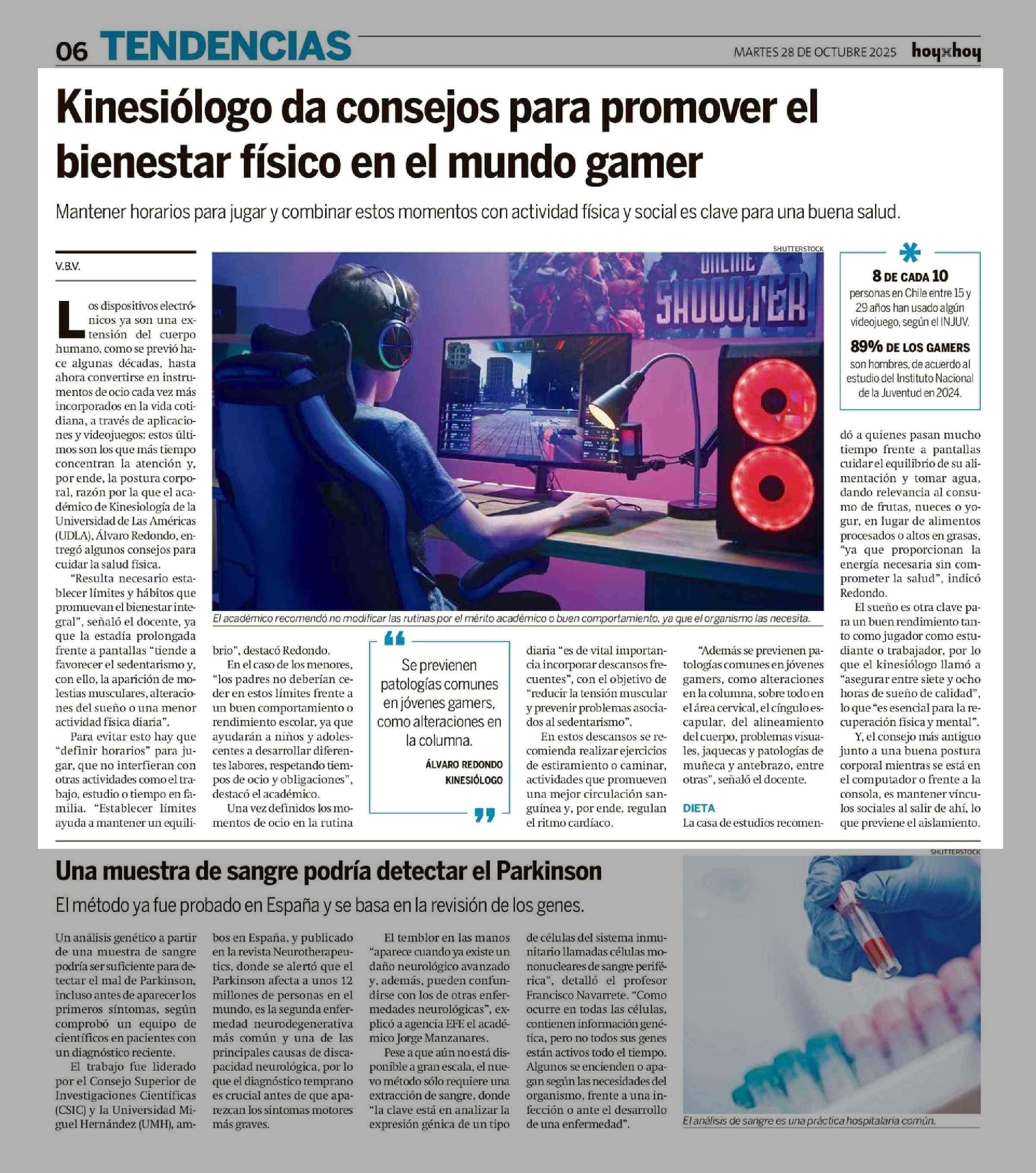 Título: Kinesiólogo da consejos para promover el bienestar físico en el mundo gamer