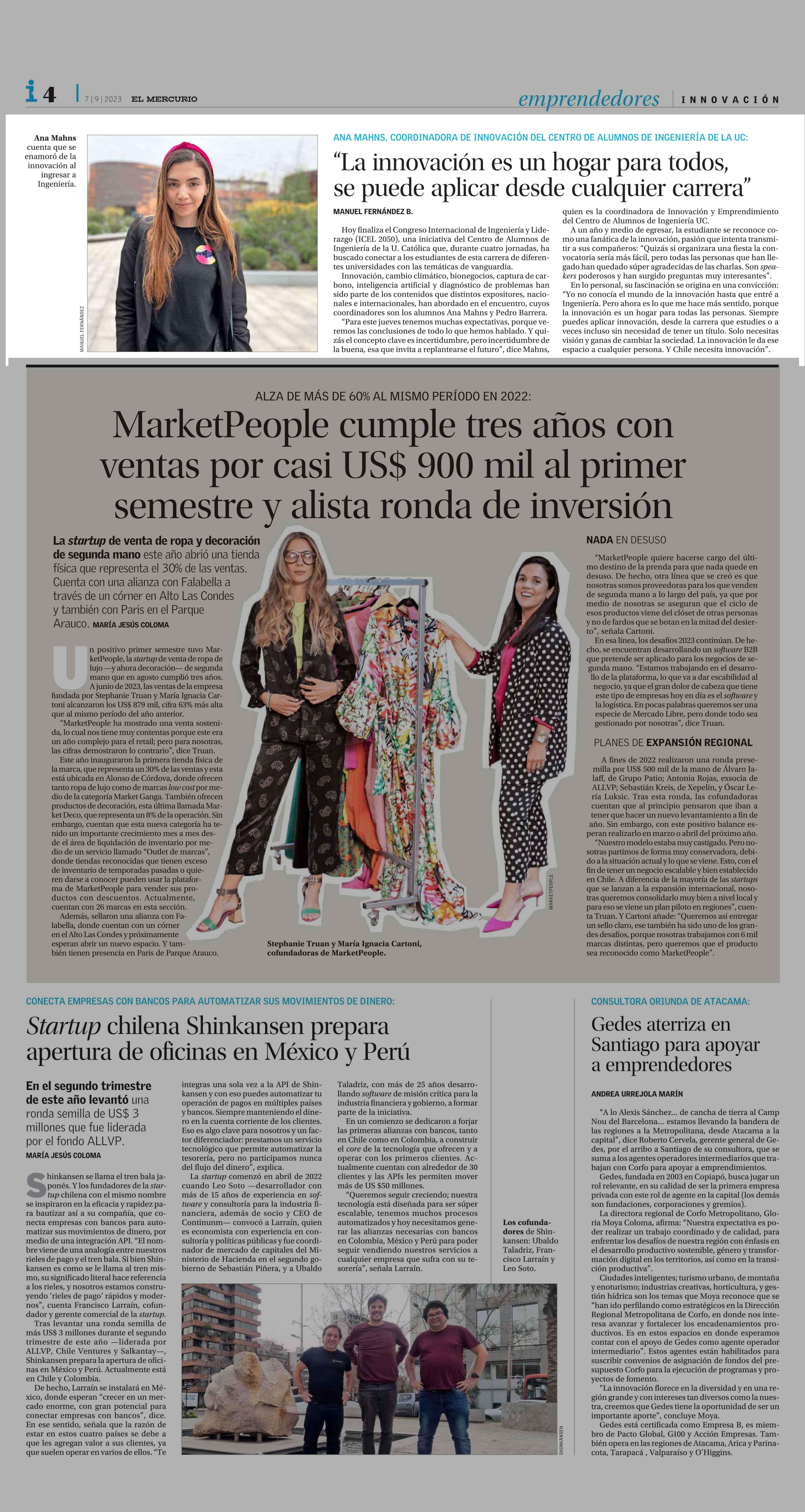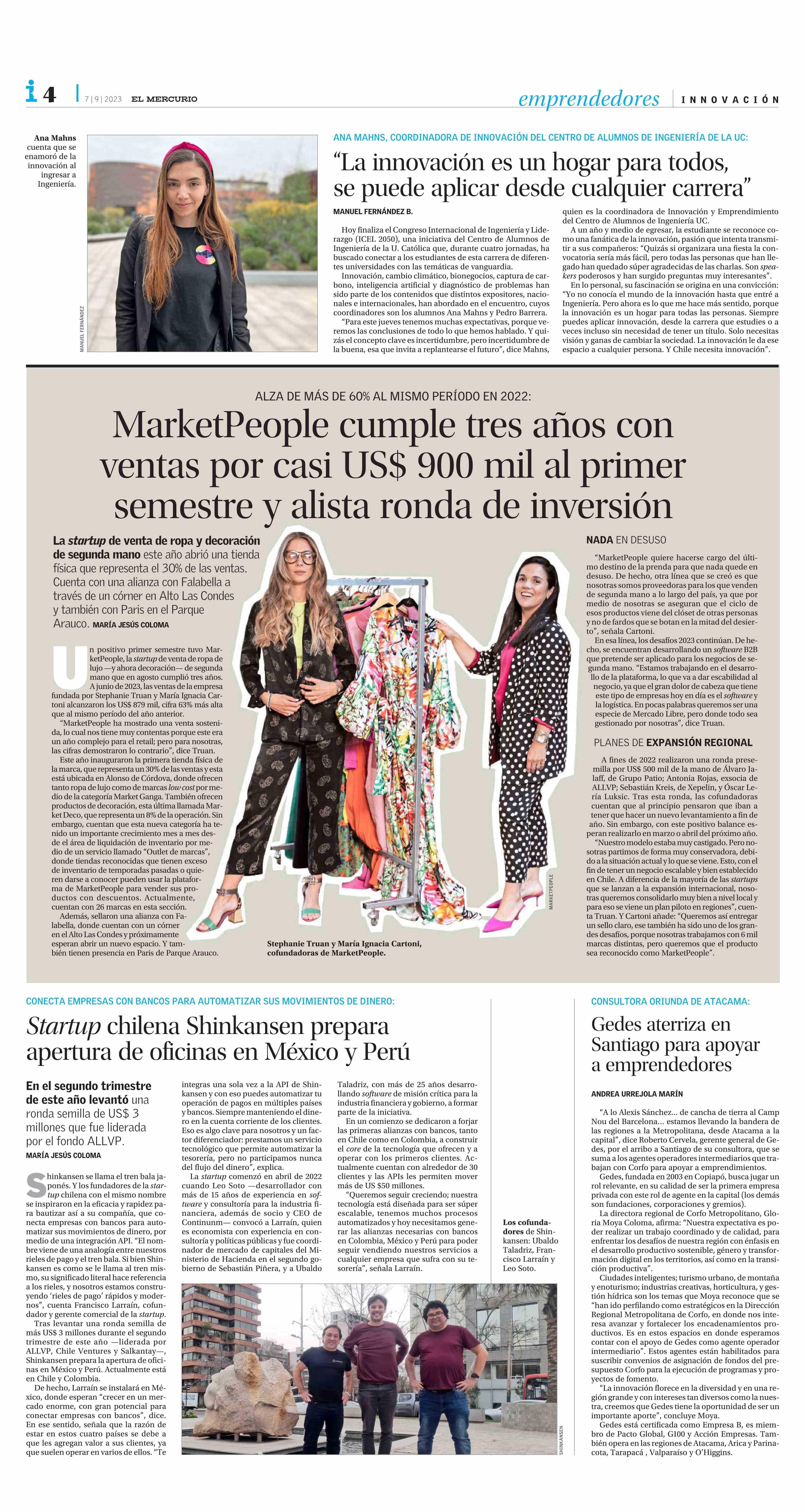"La innovación es un hogar para todos, se puede aplicar desde cualquier carrera" 07-09-2023 El Mercurio |